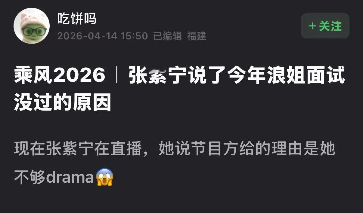张紫宁没过浪姐面试是因为不够drama张紫宁没选上浪姐是因为不够drama