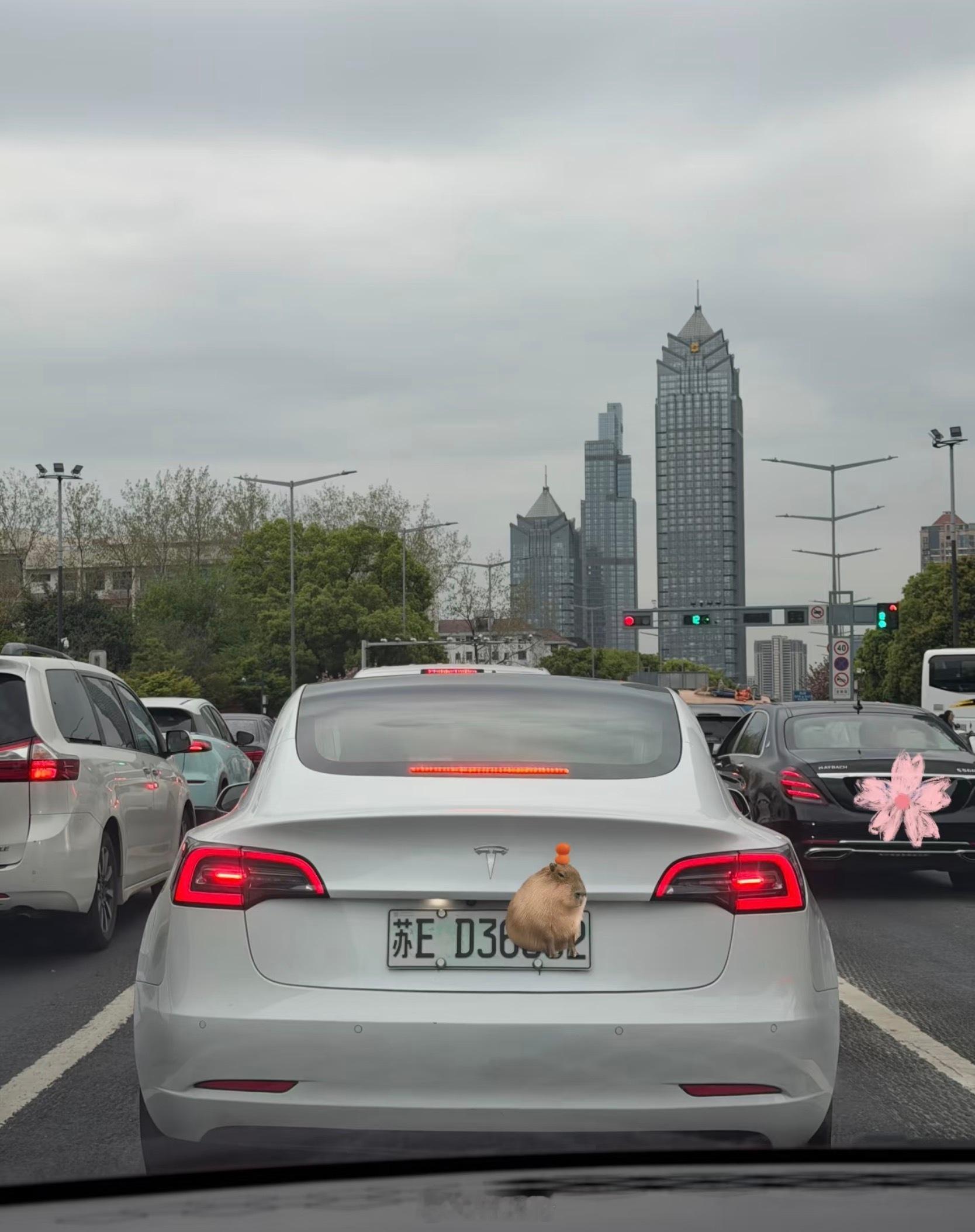 刚刚还在路上见到一辆白牌特斯拉网上看到了在中国行走的加州牌,当然自己洗成白色肯定去不合规的多地新能源车牌绿色变白色 南京·龙江