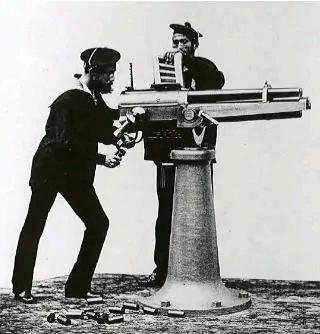 定远级铁甲舰作为19世纪末亚洲吨位最大、装甲最厚的海上堡垒,其火力体系除4门305毫米主炮和2门150毫米副炮的核心外,还搭载了一套完整的小口径速射炮系统,承担着近程防御与辅助打击的核心职能。 定远级铁甲舰装备了12门法国哈乞开司式速射炮,全部由英国阿姆斯特朗公司特许制造,根据口径与功能分为三个层级,构筑了分层覆盖的火力网:2门57毫米(6磅)单管速射炮、2门47毫米(3磅)单管速射炮,以及8门37毫米(2磅)五管转轮式机关炮(俗称连珠炮)。其中,数量占绝对优势的37毫米转轮炮尤为突出,它采用五根炮管共用一套击发机构的设计,炮重仅200千克,却能以每分钟高达60发的射速倾泻火力。相比之下,57毫米与47毫米单管炮的射速均为每分钟20发左右。这些火炮被精心布置在主甲板舷侧及上层建筑平台等射界开阔处,旨在实现对舰体周边海域的全方位覆盖,最大限度消除近防火力盲区。 该速射炮体系的首要战术使命,是应对当时日益严峻的鱼雷艇威胁。随着19世纪末高速鱼雷艇的出现,传统巨舰面临着“以小搏大”的致命风险。小口径速射炮凭借其高射速与高初速,能在鱼雷艇冲入有效发射距离(通常300米内)前,编织一道密集的拦截弹幕,以期将其击退或摧毁。其中射速最快的37毫米转轮炮,正是执行此类反小型高速目标任务的利器。 在海战主力舰队对决中,当交战距离拉近至2000-3000米时,这些小口径火炮也扮演着重要的辅助角色。尽管其穿甲能力有限——57毫米炮在274米距离上可击穿约120毫米钢板,而37毫米炮同距离仅能击穿24毫米,难以威胁敌方战舰的核心装甲带——但它们对无防护的舰面设施和暴露人员具有可观的杀伤力。通过倾泻榴弹,可以破坏敌舰的舱面设备、通信设施,并有效杀伤炮位人员,从而干扰、削弱敌舰的作战效能。在黄海海战中,定远、镇远二舰的速射炮就曾多次击中日本舰船,并取得了一定的成果。 综上所述,定远级铁甲舰的小口径速射炮体系,是一套为应对19世纪末海战新威胁而生的综合性近防系统。它不仅是防御鱼雷艇突击的“贴身侍卫”,也是在主力交火中打击敌舰薄弱环节、实施人员杀伤的辅助力量。其多层次、高射速的特点,与主副炮的重火力相结合,共同构成了定远级这座海上钢铁要塞的完整攻防体系。