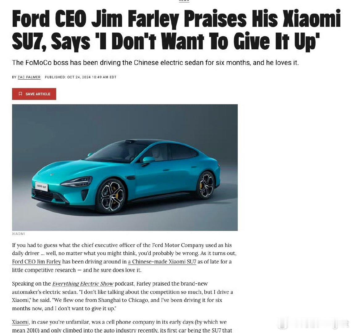 对福特来说,一个特斯拉都焦头烂额了,再来一堆中国车企那岂不是不能活了福特CEO反对中国车入美