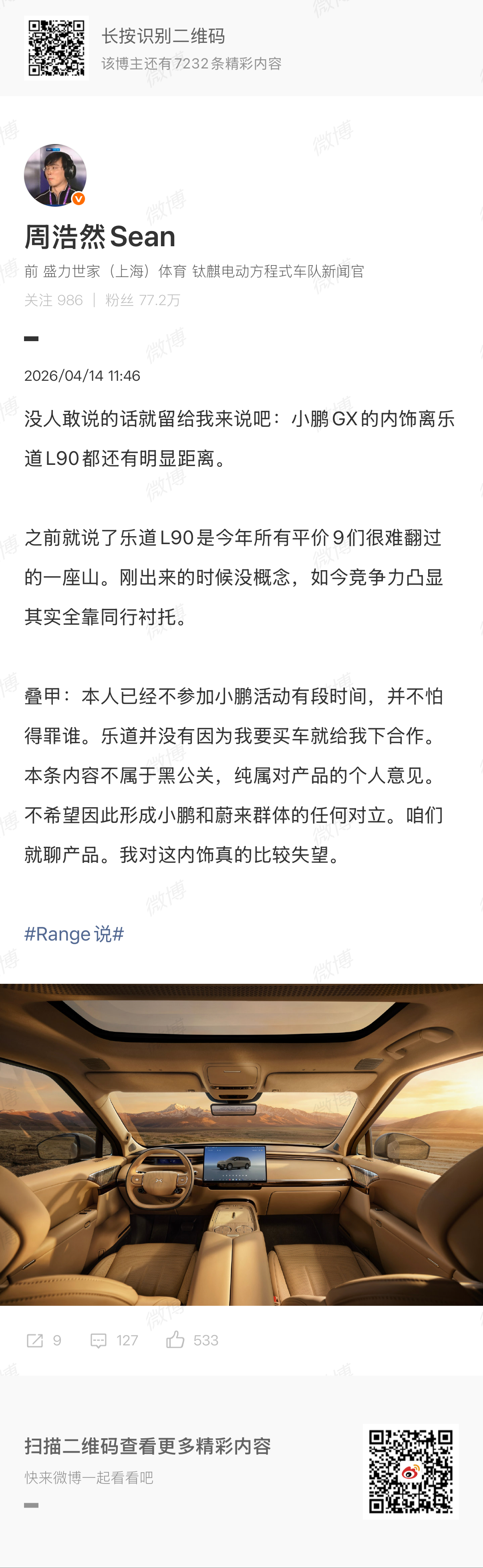 浩然对小鹏GX的外观内饰貌似都不太满意看看会不会做一期Telescope聊聊GX
