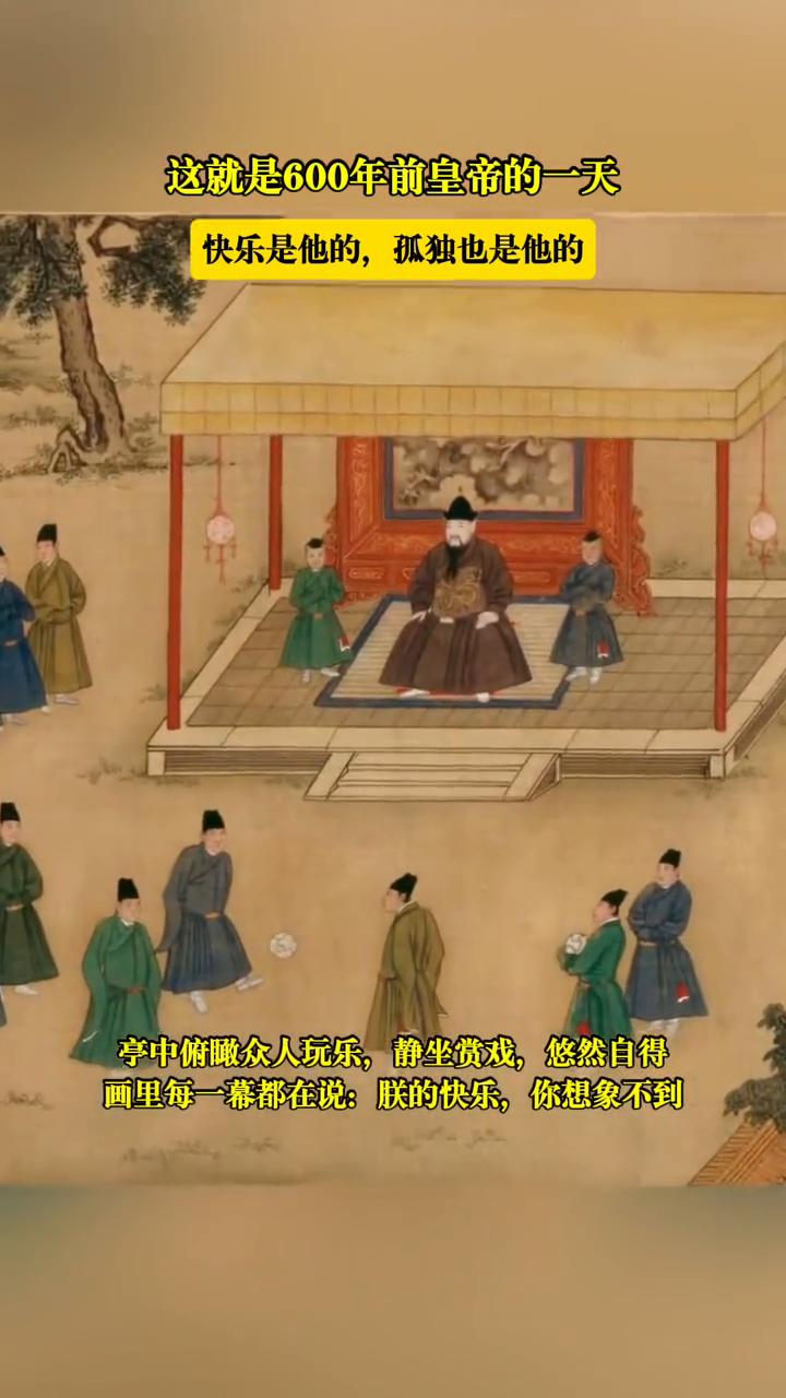 这就是600年前皇帝的一天,快乐是他的,孤独也是他的。 佚名。(明官宗行乐图)。 北京故宫博物院。 这组《朱瞻基行乐图》描绘了帝王在御园的日常生活。一身明黄袍服,乘轿而行,侍从如云,半步不用走,全程被抬着逛御花园。 他玩的捶丸就像现代"高尔夫",他挥杆、击球、人洞跟今天球场一模一样。六百年前他就把贵族运动玩透了,也亲自"投壶",手拿箭,眼神凌厉,不是摆拍,是真练。 明朝皇帝文能书画,武能骑射。亭中俯瞰众人玩乐,静坐赏戏,悠然自得。画里每一幕都在说:朕的快乐你想象不到。可越看越扎心:他所有热闹永远只有自己一个人。万人之上,风光无限;万人之上,也孤独到底。原来再至高无上的人生也逃不过高处不胜寒。