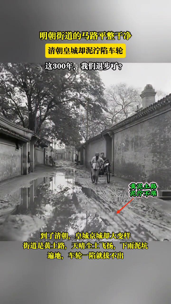 明朝街道的马路平整干净,清朝皇城却泥泞陷车轮,这300年我们退步了? 明朝苏州、南京、北京的主街全是工部标准大块青石板铺设,严丝合缝、排水通畅,车马驶过干净利落。那时城建有规范、民生有保障,百姓丰衣足食,街道繁华得很。几百年后老家的老石板路至今还平整发亮。到了清朝,皇城京城却大变样。街道是黄土路,天晴尘土飞扬,下雨泥坑遍地,车轮一陷就拔不出。百姓衣衫褴楼,食不果腹。 不是300年科技退步,是治理与民生投入的天差地别。明朝重城建、护民生;清朝疏于管理、民生凋敝。一条路藏着两个朝代的兴衰密码。