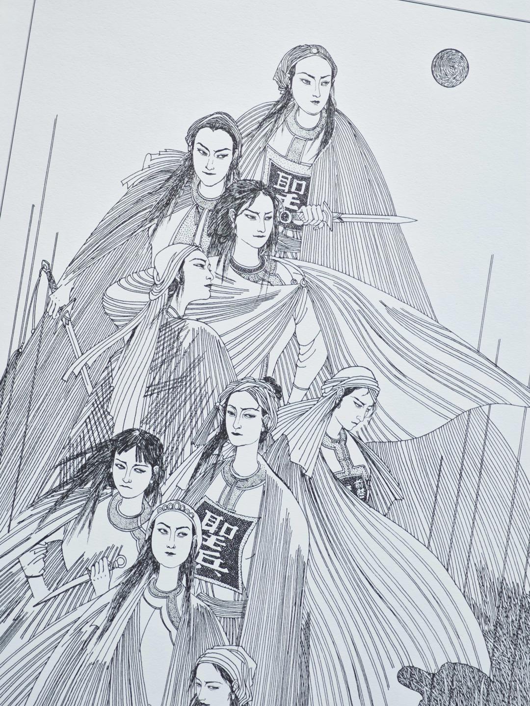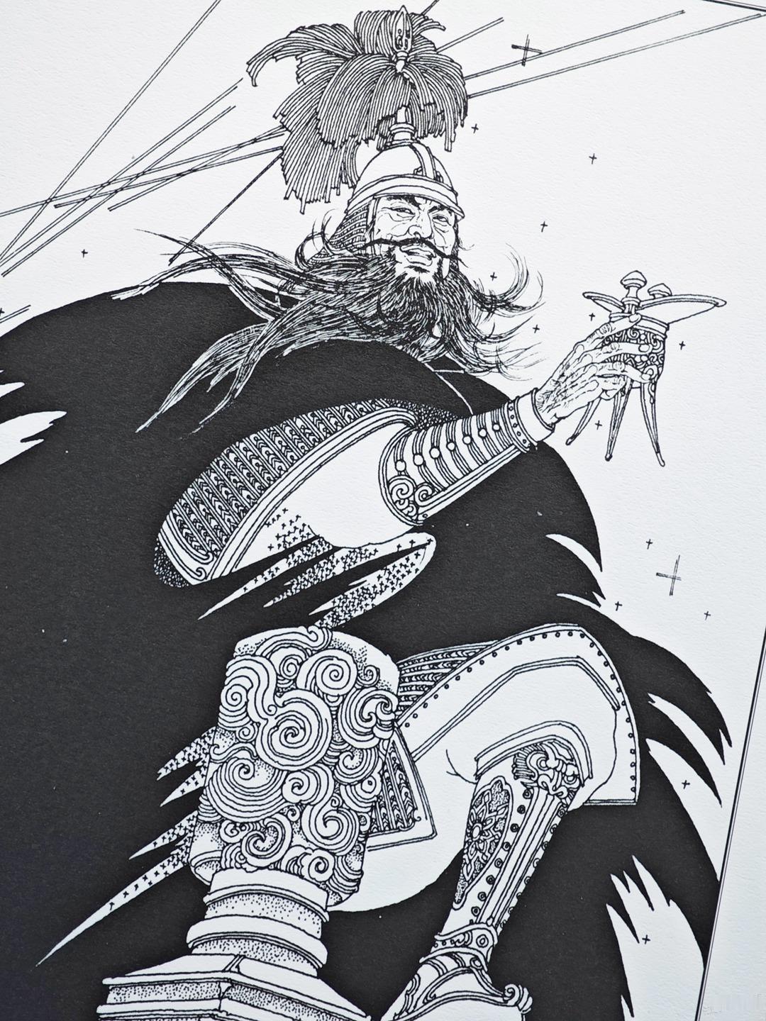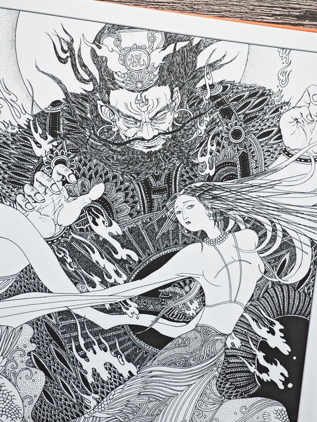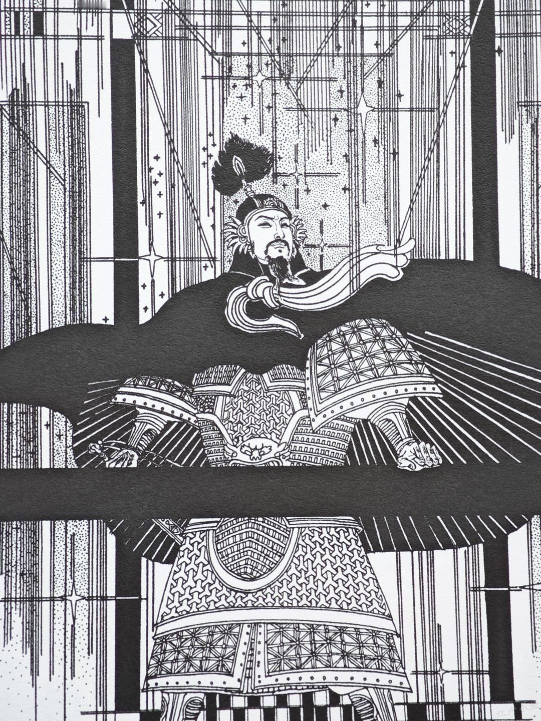 卢延光《黄鹤楼传说》欣赏2 请继续欣赏1988年由卢延光、蒙复旦和江郁之合作的诗画集《黄鹤楼传说》,全书共40个小故事,0.2mm粗细的笔尖勾线,用了大量的曲线直线,黑色白色对比来组合出奇幻效果,很装饰很夸张,而又能不失中国风韵味,这种画风在当年很有开创性。