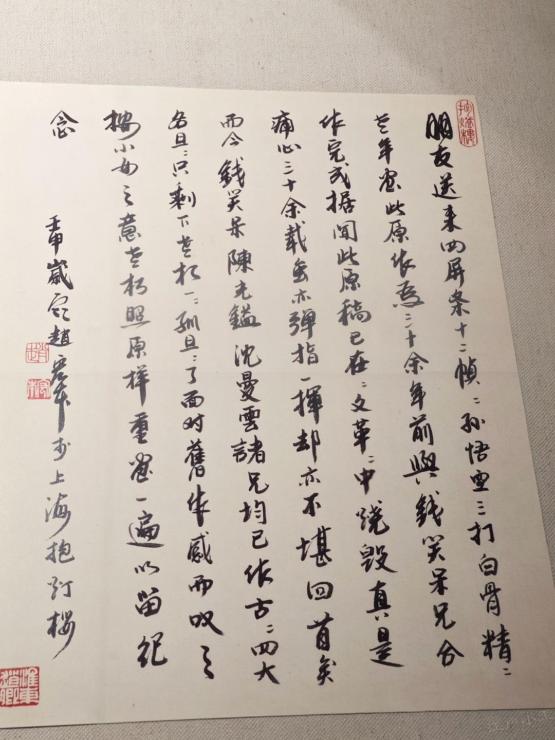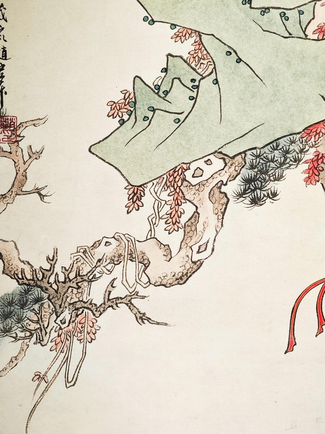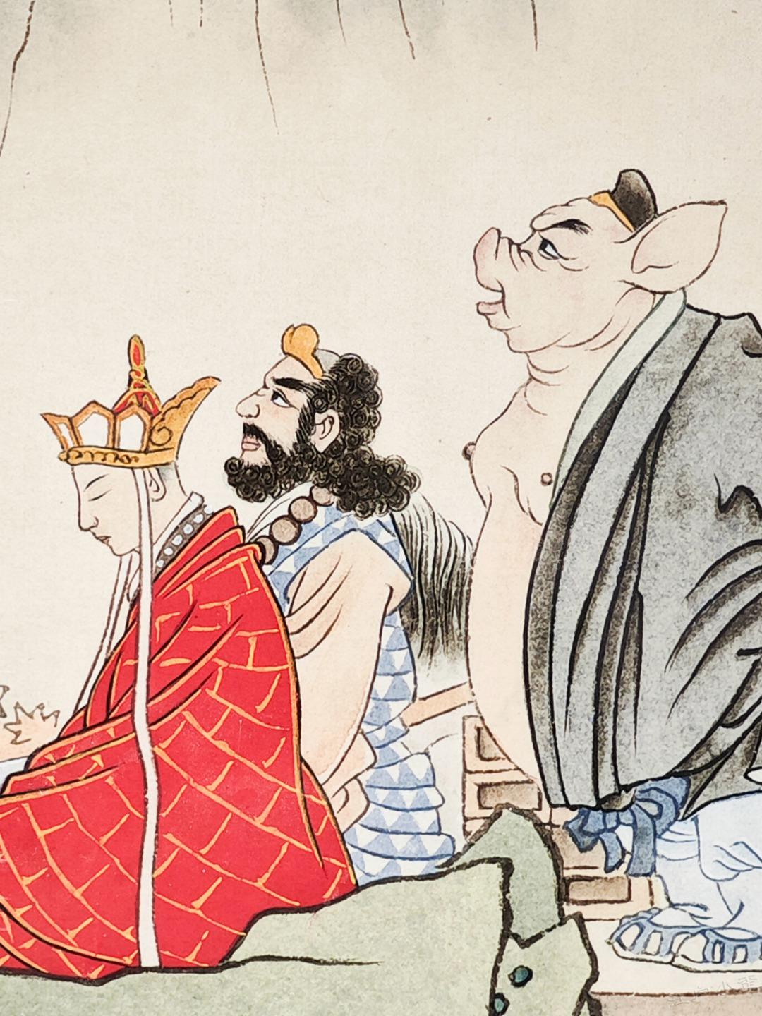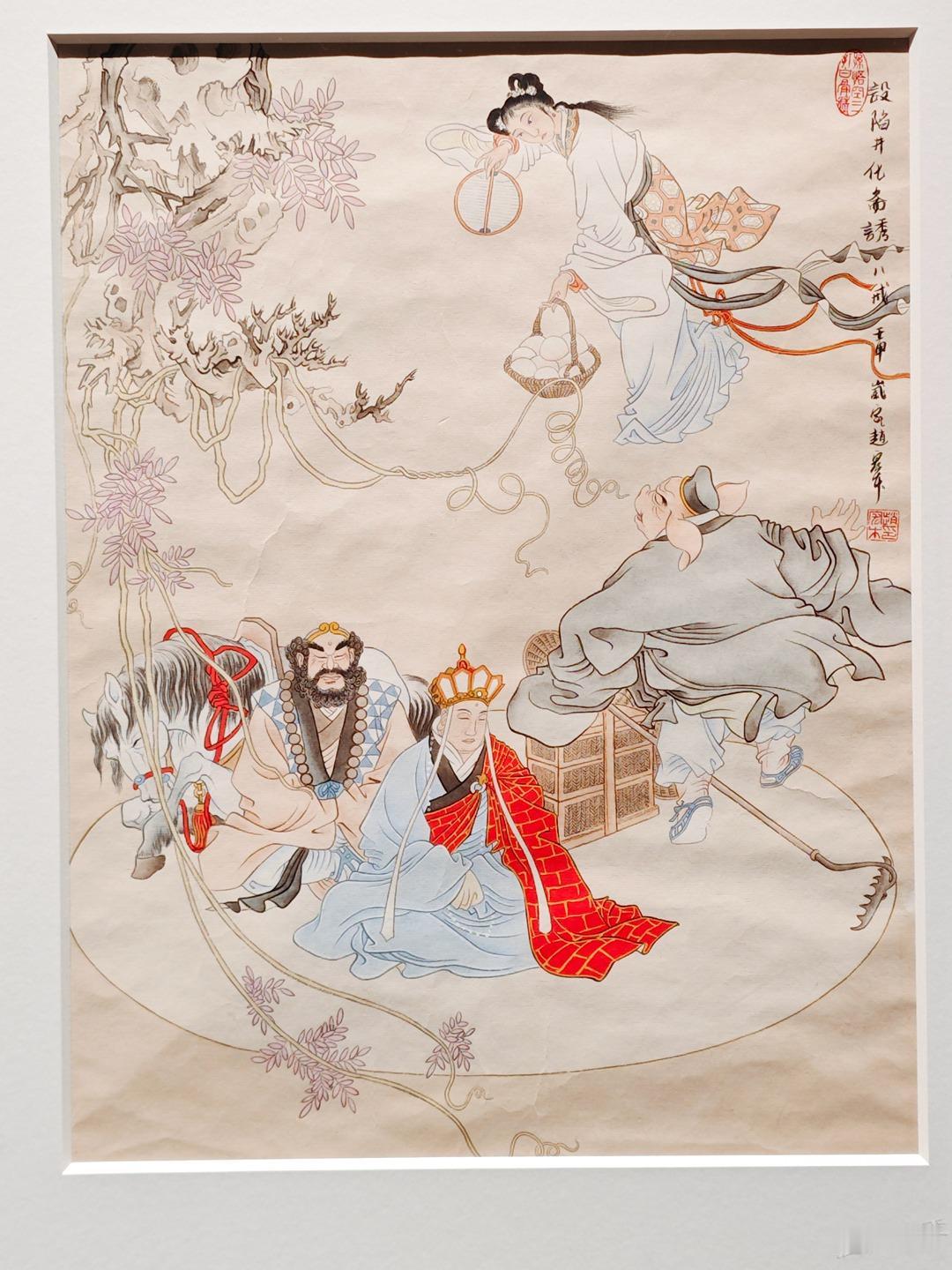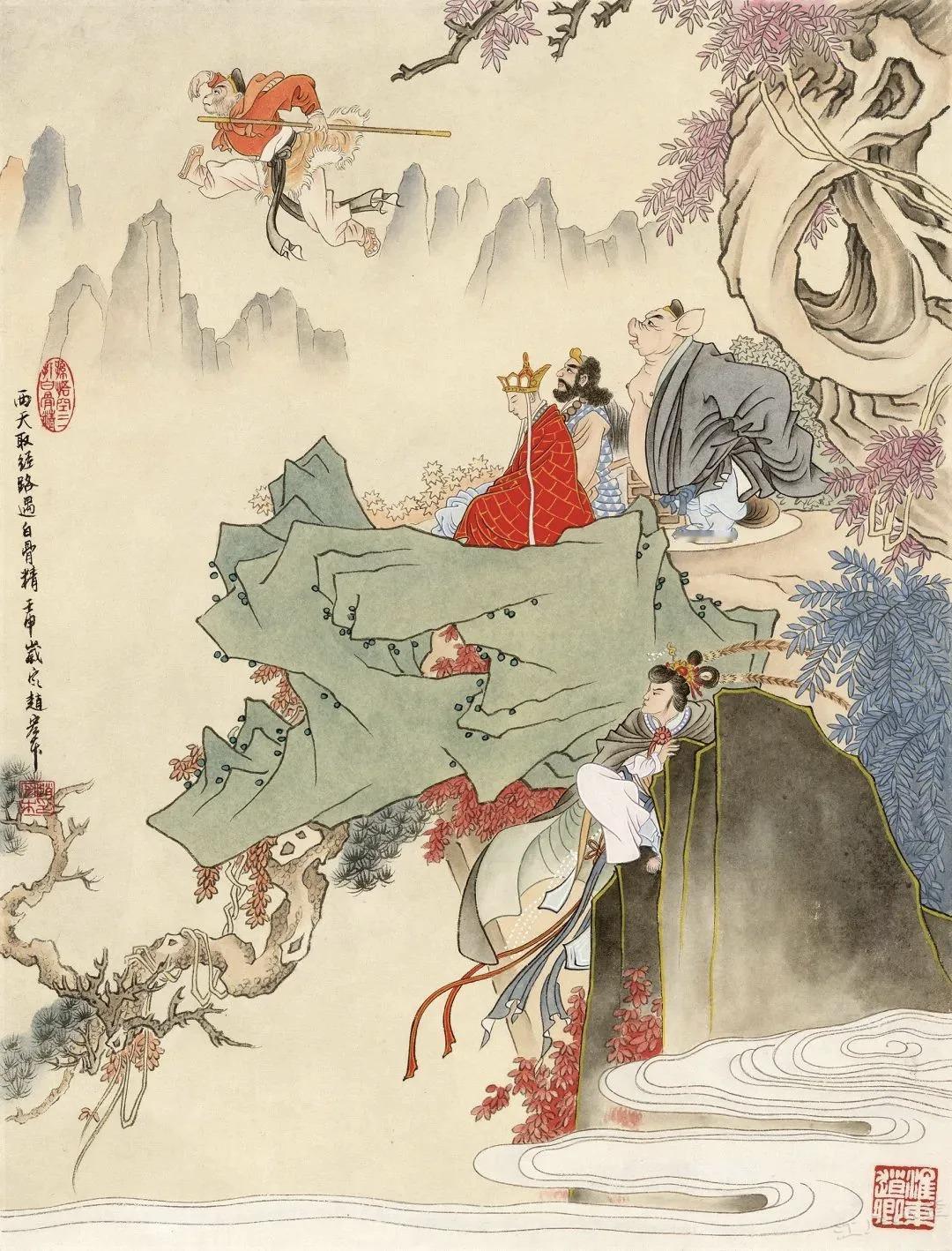 《孙悟空三打白骨精》彩色原稿欣赏 赵宏本和钱笑呆先生1962年合作的《孙悟空三打白骨精》是一代白描连环画经典,1963年二人也完成了彩色版12幅的年画,线稿彩稿,珠联璧合。 今年新春我在广州美术馆看到了《三打》画稿真迹,尺寸大约是16开,只是觉得画稿纸张发皱,而且玻璃隔得太远,看不真切。 随后我赶往广州人民艺术中心,看到了超大的《三打》展板,约较原稿放大了四倍,基本保持了清晰度,且画稿处理得非常清爽干净,够大才够爽。 一旁还有赵宏本先生亲笔说明,原来1992年的时候,赵老听闻初代原稿被毁,老搭档钱笑呆也不在了,他独自提笔重描了这部彩色经典。 这部重描的画稿后来被漫画家金城先生收藏,广州美术馆展示的是真迹,而同期在广州人艺有放大的仿制品,如果不是特别仔细都看不出是仿制品,看起来挺过瘾的,故而将照片细节陆续晒出,画面和初代画稿肯定不能比了,体谅赵老当时已经是近80岁高龄,实属不易,也有欣赏价值,请各位参详。