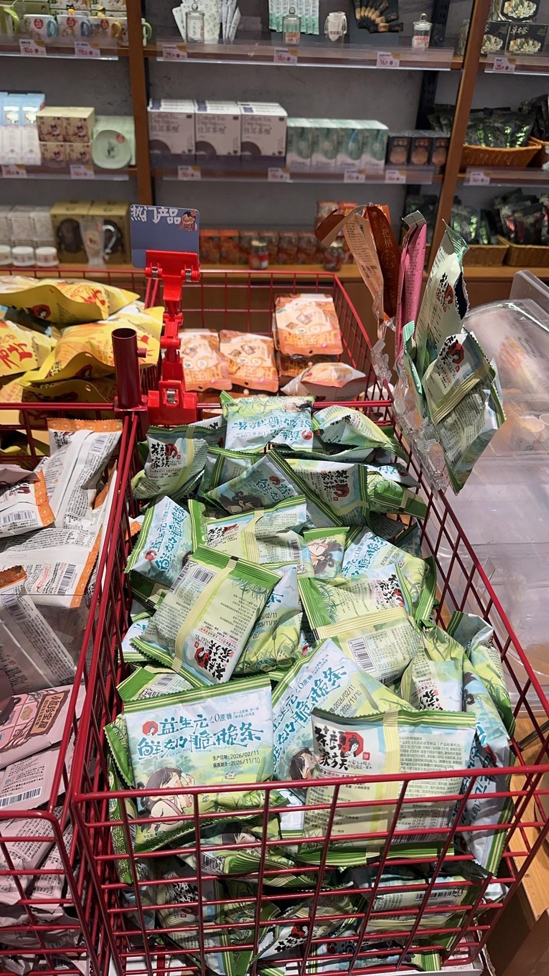 要不是同行的媒体老师要去买,我都不知道重庆机场有一家这么大的茶颜悦色,我都恍惚了,这不是长沙特产吗? 这家店内,奶茶不是主要产品,各类零食才是,包装也是关键,好看,养眼,有茶颜的特色的,太绝了,虽然都是一些什么薯片,玉米粒,黑芝麻丸,锅巴之类的,但包装确实很精彩,现在感觉奶茶店也在转型,蜜雪也在卖零食了,推出各类平价产品,主体消费力还是学生党~