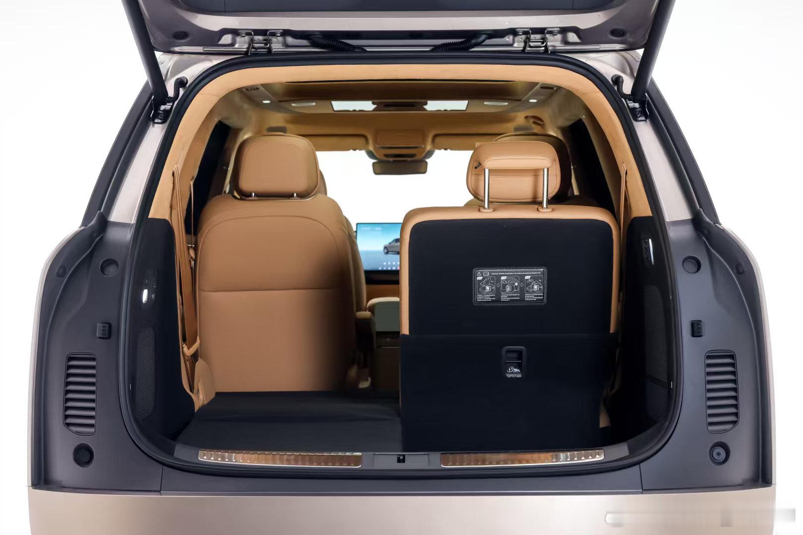 满员6人时仍可容纳6个24英寸行李箱第三排支持50:50独立电动折叠全部放倒后最大拓展至1748L还能装下4台自行车!