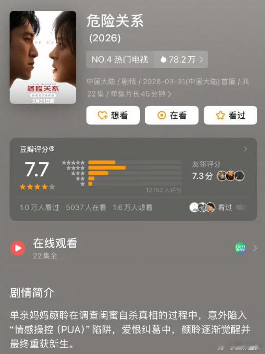 孙俪危险关系豆瓣涨分危险关系豆瓣涨至7.9分孙俪新剧《危险关系》从7.7涨到7.9了,好作品真不怕晚,演技撑起来的分数,实至名归!
