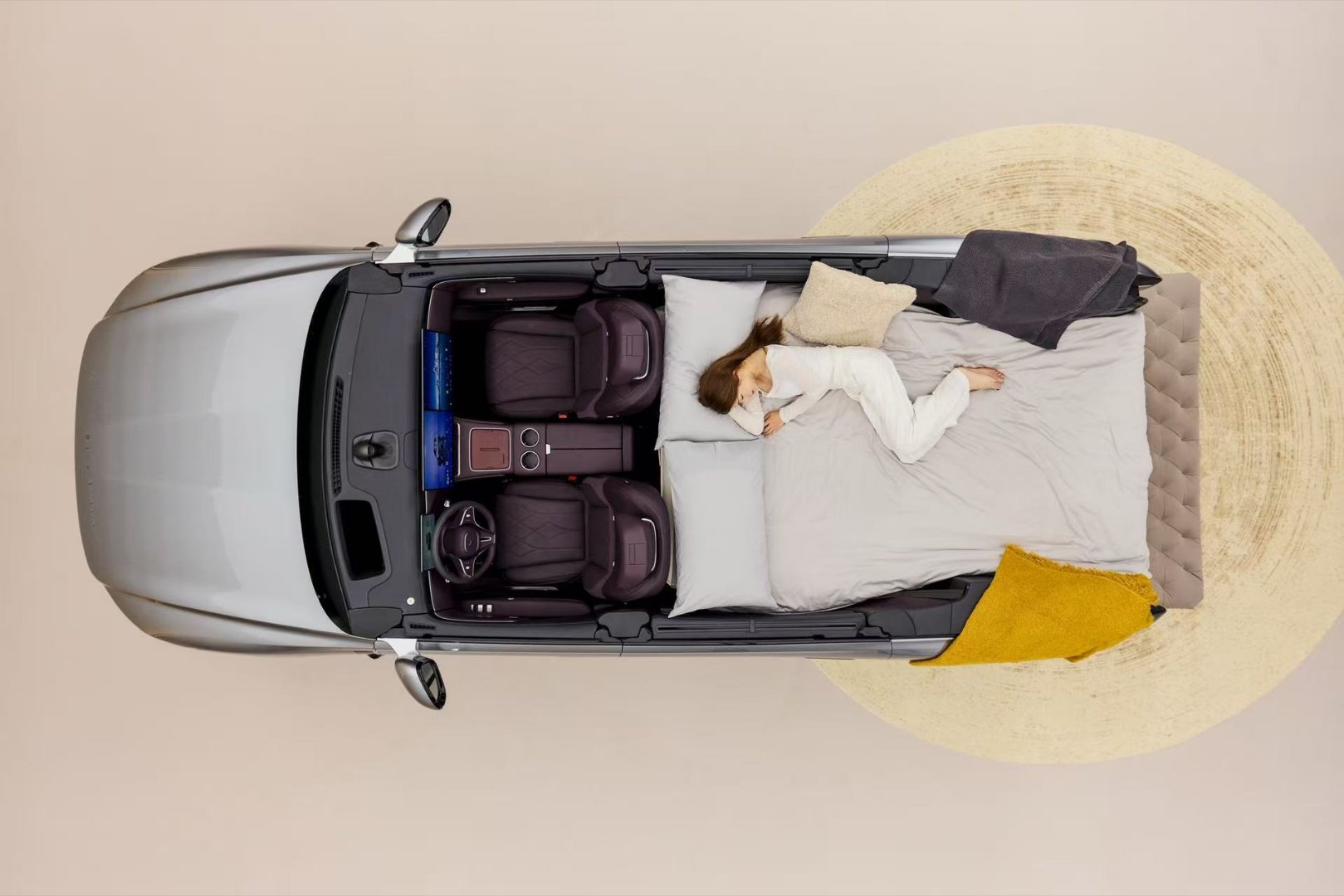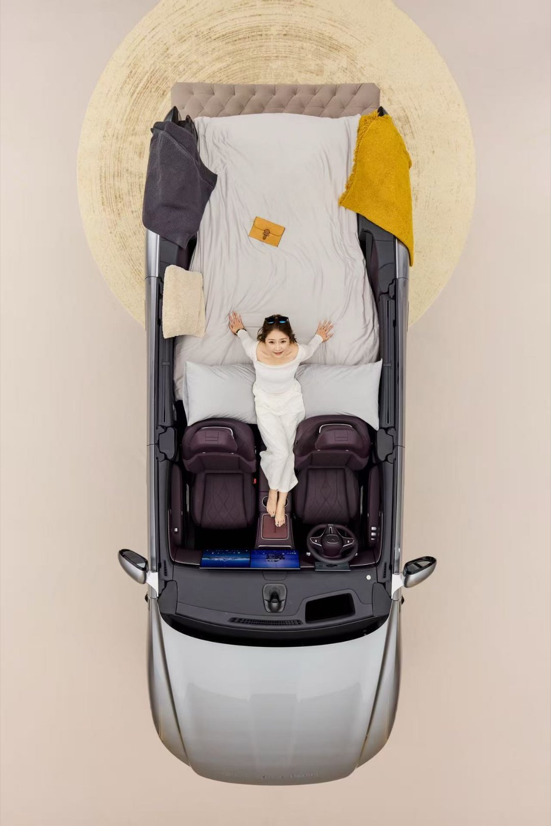 泰山X8全自动一键成床,教授的美女主持丹梓也体验了一把,太舒服了。岚图泰山X8