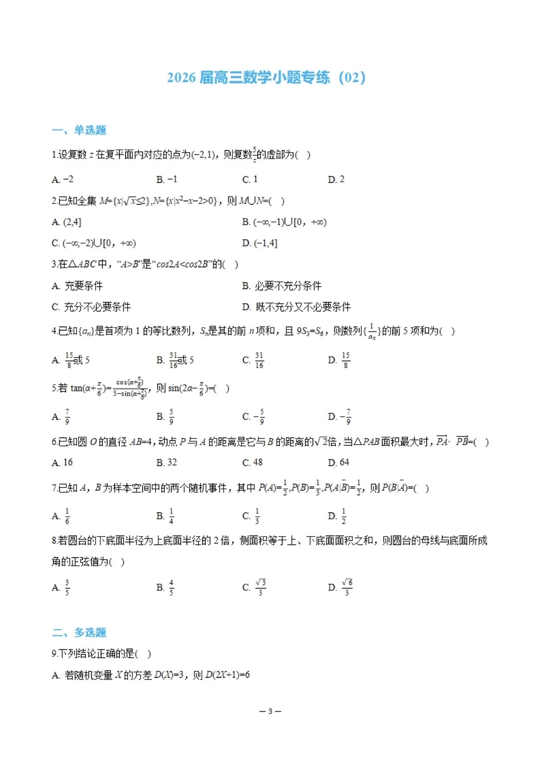 隔天练习填空+选择,题目难度不追高考最难题。目标是:提高速度+中档题正确率,稳拿该拿的分。