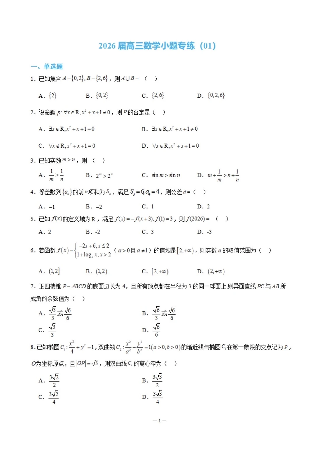 一是小题强化