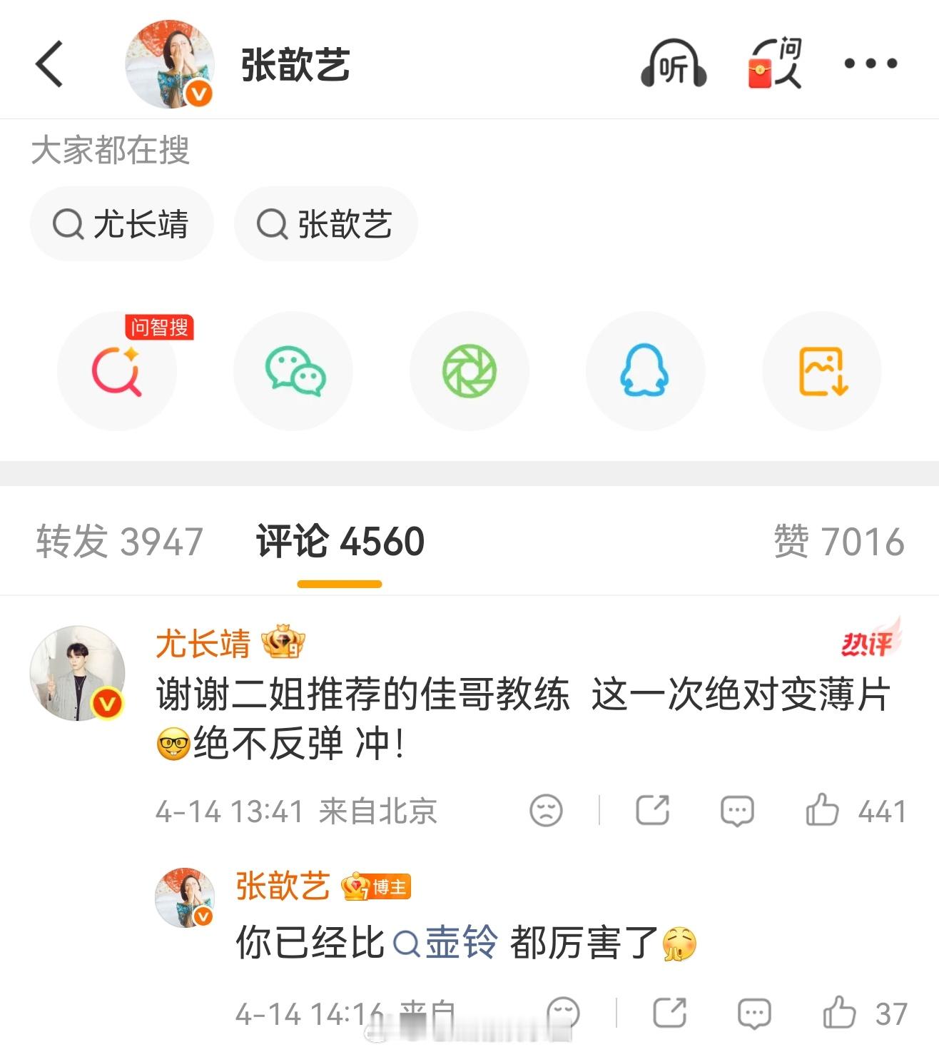 张歆艺尤长靖互动张歆艺推荐尤长靖教练张歆艺贴心安利健身教练,尤长靖变身薄片美男指