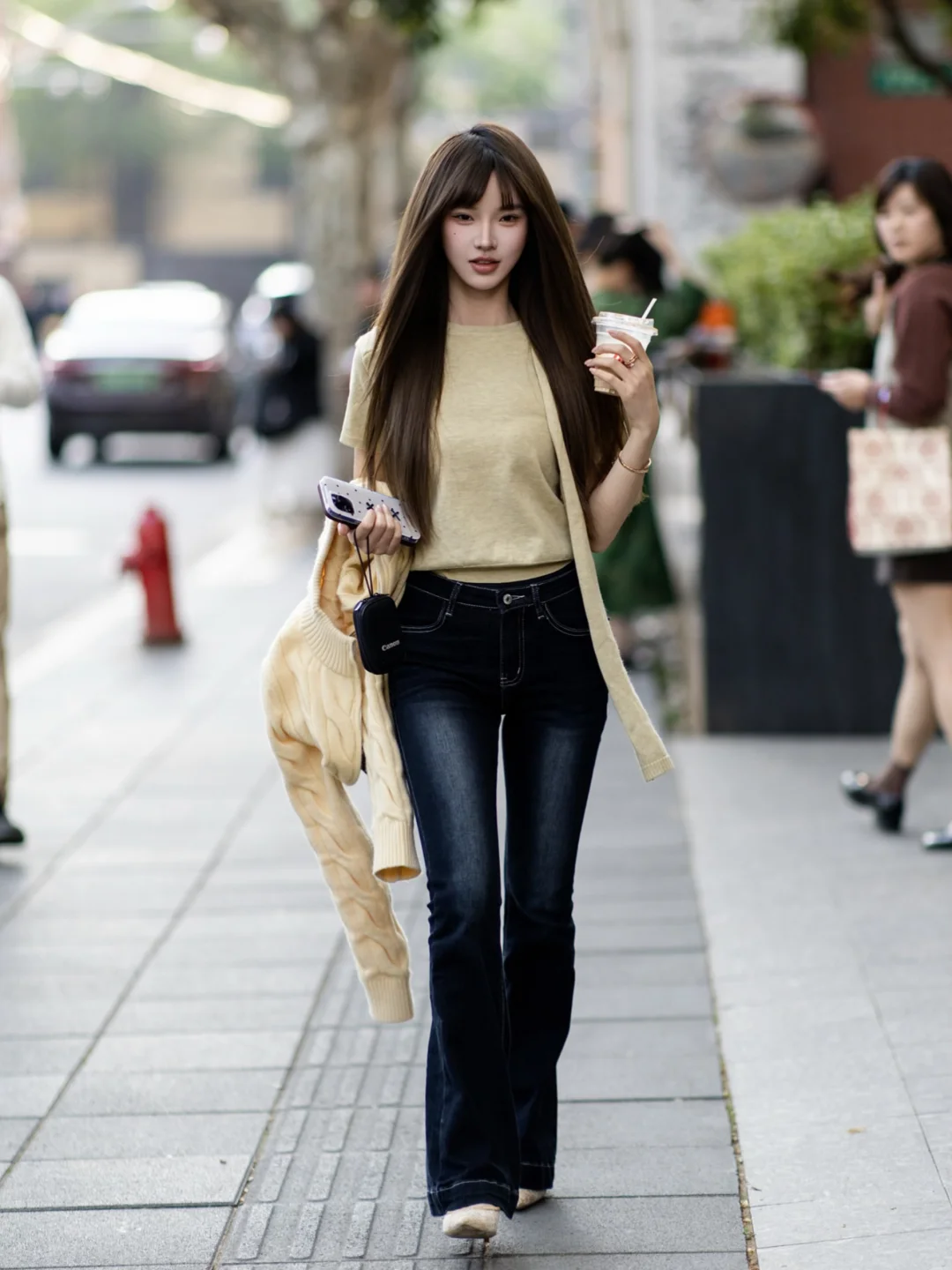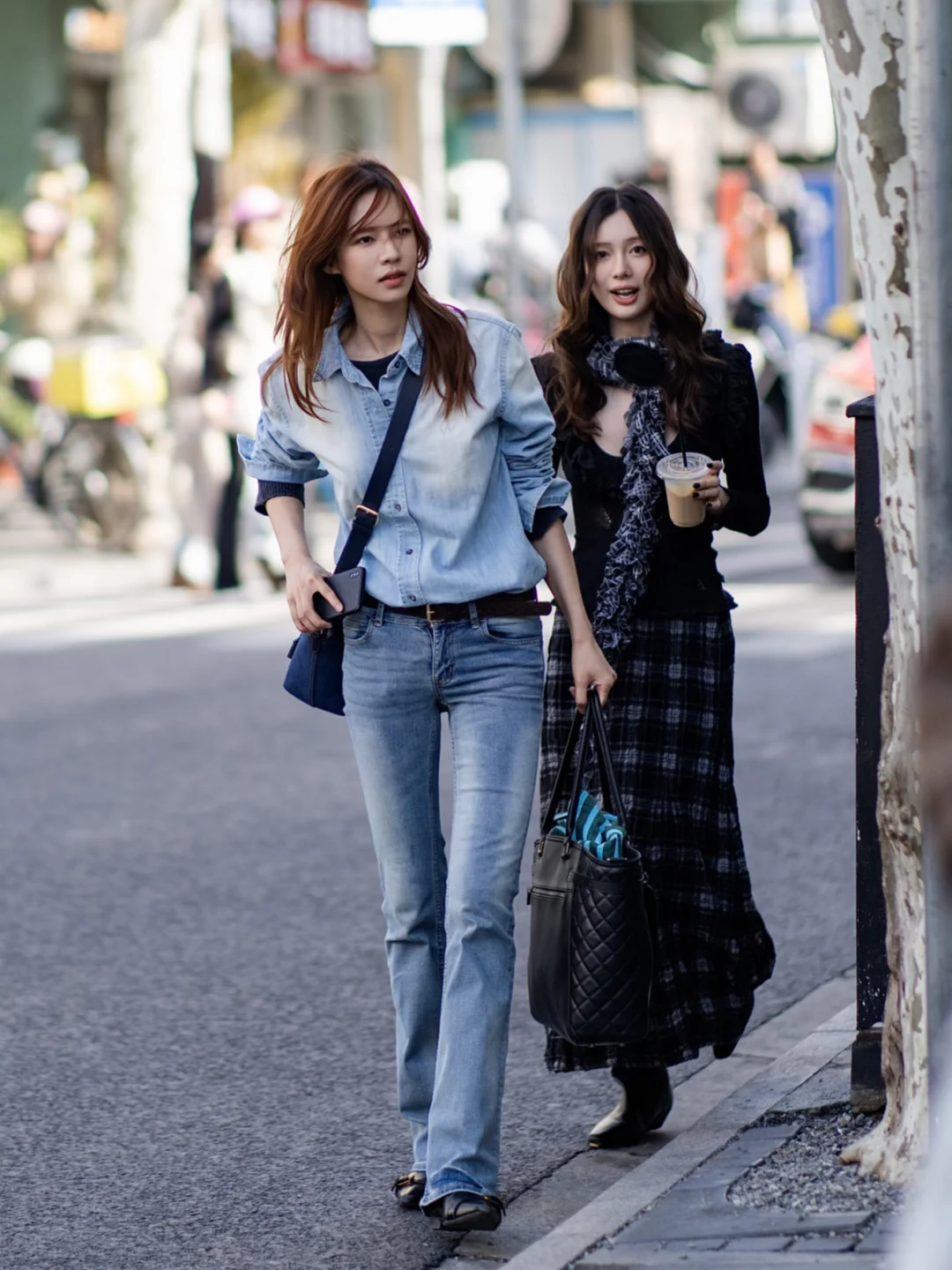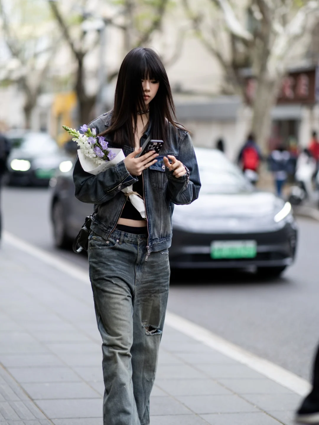 街拍穿搭 街拍牛仔裤穿搭 紧身牛仔裤