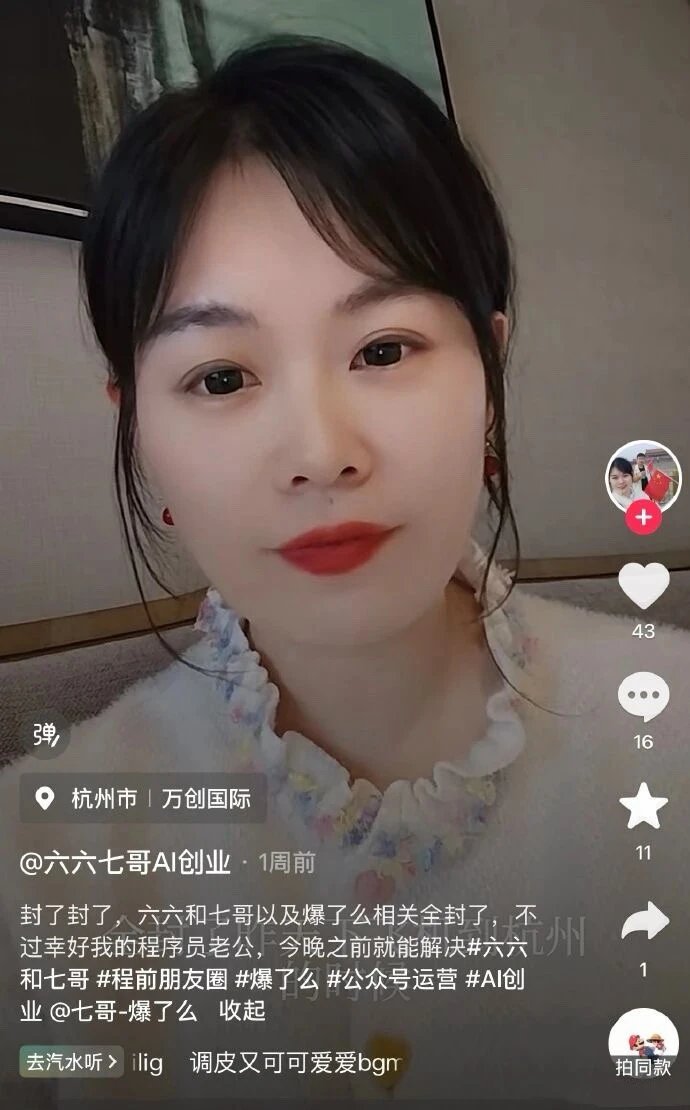 最近,深圳一对“90后”夫妻六六和七哥号称“用AI写微信公众号年赚200万元”的消息,引发全网热议,登上热搜。 然而,就过了几天吧,我发现,他们公司微信公众号“爆了么AI”已被平台封禁,提示:“该账号存在非真人自动化创作行为,已被停止使用。” 当事人六六也发视频确认,4月1日发现公司下面的微信公众号和小程序均被封禁。