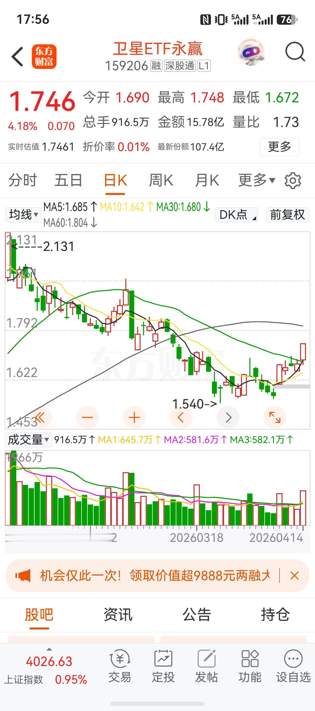 卫星板块股票基金大涨,是反转行情吗?赚钱机会来了吗? 卫星股票ETF大涨:是反转还是反弹?机会与风险全拆解。 明确一个核心结论:当前更像是超跌后的反弹+政策催化的情绪修复,还不能完全确认是趋势性反转;机会存在,但风险同样很高,绝不是“闭眼赚钱”的行情。 一、先看懂这次大涨的本质 1. 技术面:超跌后的修复,而非趋势反转 从日K图可以清晰看到: 前期从高点2.131一路下跌,最低探至1.540,最大回撤超27%,属于典型的超跌状态,本身就有技术性反弹的需求。 今日大涨4.18%,收盘价1.746,刚刚突破5日均线(1.685)和10日均线(1.642),但仍在30日均线(1.680)和60日均线(1.804)下方,尤其是60日均线(长期趋势线)还在向下,说明中长期下跌趋势尚未完全扭转。 成交量放大至916.5万,量比1.73,属于放量上涨,短期资金进场明显,但要确认反转,需要后续持续放量站稳60日均线(1.804),并回踩不跌破。 2. 基本面:政策+产业双重催化,是行情的核心驱动力 这次上涨不是空穴来风,有明确的利好支撑: 政策端:安徽等多地出台商业航天产业扶持政策,明确2028年产业规模突破700亿元,工信部加快太空算力培育,国内低轨卫星组网建设加速推进。 产业端:国内48小时内完成“千帆”“星网”双箭连发,低轨卫星从试验验证进入规模建设阶段;海外SpaceX拟IPO、卫星技术突破,也带动全球商业航天板块估值重估。 资金端:卫星主题ETF包揽当日涨幅榜前列,资金集中涌入博弈政策红利,推动板块集体拉升。 二、到底是不是反转?关键看这3个信号 ✅ 确认趋势反转的“硬条件”(缺一不可) 均线系统完全多头排列:5日、10日、30日、60日均线全部拐头向上,且价格站稳所有均线上方,回踩不跌破。 成交量持续放大:后续交易日成交量维持在当前水平(900万以上),形成“价涨量增、价跌量缩”的健康量价关系,而非单日脉冲式放量。 基本面持续兑现:卫星组网订单落地、火箭发射成本下降、手机直连卫星等应用场景商业化,带动成分股业绩增长,而非单纯概念炒作。 ⚠️ 当前的“反转不足”信号 中长期均线(30日、60日)仍向下,趋势未改; 近3个月净值仍下跌超20%,属于超跌反弹,而非趋势逆转; 板块仍以主题炒作为主,多数成分股业绩尚未兑现,估值依赖情绪。 三、赚钱机会来了吗?机会与风险并存 📈 潜在机会 产业长期成长空间大:卫星互联网是6G、天地一体化的核心基础设施,低轨组网是国家战略,长期赛道确定性高,适合长期布局。 短期情绪修复空间:政策密集出台+产业事件催化,短期资金关注度高,反弹行情可能延续,有波段操作机会。 ⚠️ 必须警惕的风险 主题炒作风险:当前上涨更多依赖政策和情绪,若后续利好不及预期,资金快速撤离,可能再次大幅回调。 波动极大:卫星板块属于高波动赛道,历史上多次出现单日大涨大跌,追高容易被套。 业绩兑现风险:多数卫星企业仍处于投入期,盈利周期长,若业绩无法跟上估值,会面临估值回调压力。 技术面压力位:上方1.804(60日均线)、1.792(前期平台)、2.131(历史高点)都是强压力位,突破难度大。 四、给普通投资者的实操建议 1. 已经持仓的投资者 若成本较低:可设置止盈止损,比如以5日均线(1.685)为止损线,跌破则减仓;上方1.804附近遇阻可部分止盈。 若追高被套:不要盲目补仓,等待回踩企稳后再操作,避免越套越深。 2. 想进场的投资者 绝对不要追高:等回踩5日均线(1.68-1.70区间)企稳后,再小仓位试错。 分批布局,控制仓位:用定投或分批买入的方式,单次仓位不超过总资金的5%-10%,避免满仓承受波动。 明确投资周期: 短期(1-2周):博弈反弹,严格设置止损,快进快出; 长期(1-3年):看好卫星产业,可定投布局,忽略短期波动。 做好风险对冲:搭配宽基指数(如沪深300、中证500),分散单一赛道风险。 最后提醒 卫星板块是典型的“高成长、高波动”赛道,没有只涨不跌的行情。这次大涨是机会,但绝不是“躺赢”的机会,一定要结合自己的风险承受能力,理性投资,不要被短期涨幅冲昏头脑。