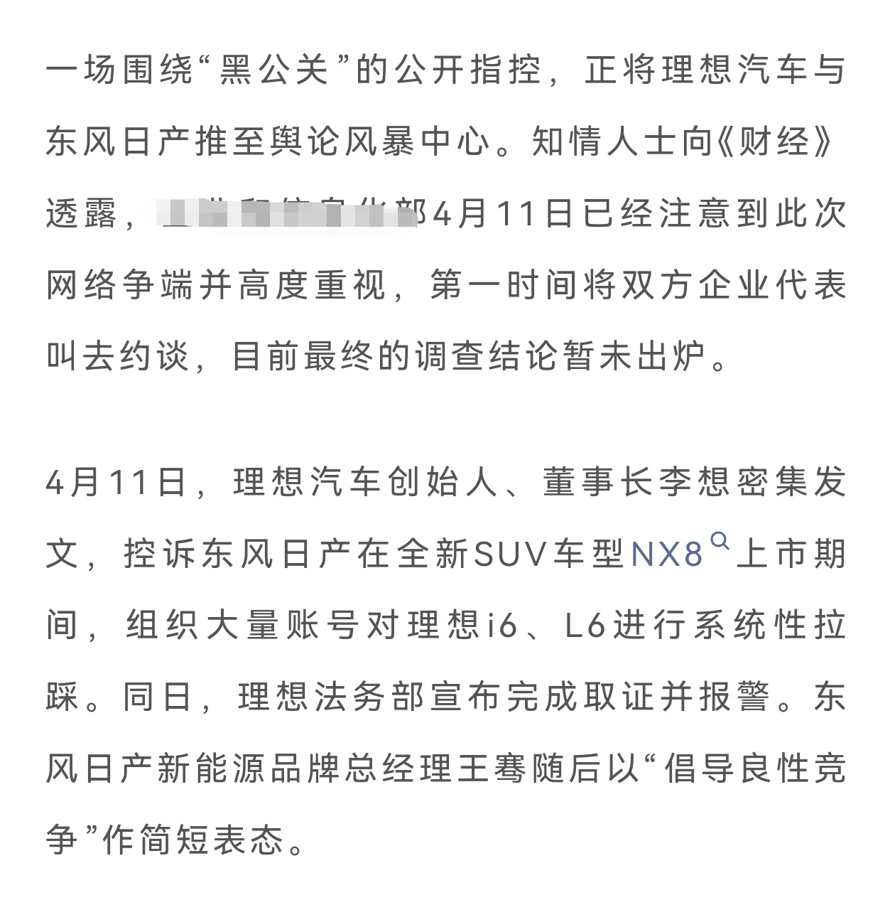 理想和日产的这场舆论争议事件,家长在4月11日已经注意到此次网络争端并高度重视,第一时间将双方企业代表叫去约谈,目前最终的调查结论暂未出炉。大v聊车理想汽车和东风日产被约谈