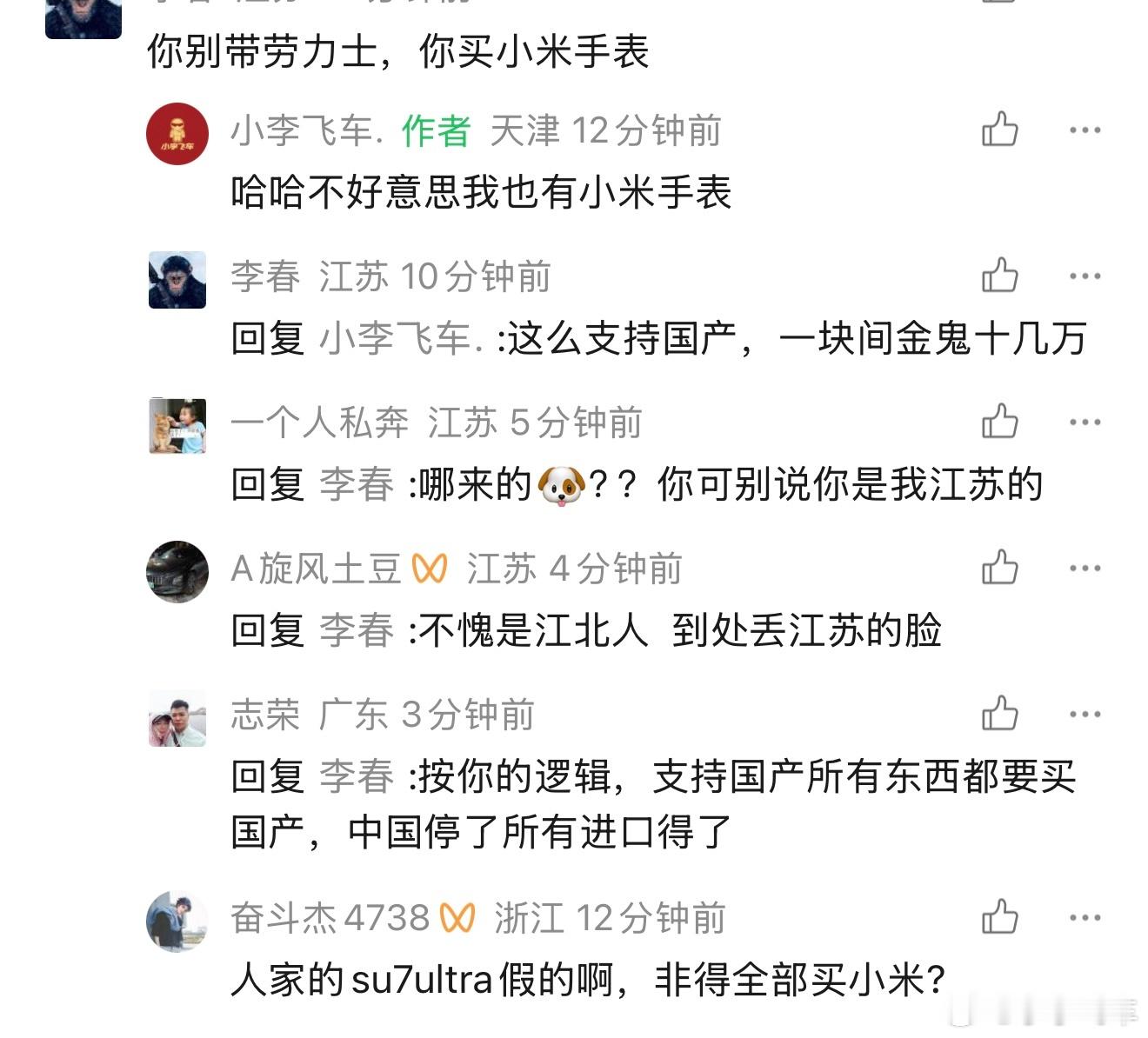 小李飞车 评论区来了个喷我戴劳力士没戴小米手表的!这都啥智慧啊哈哈哈都不用我说现在已经三十多条骂他的了