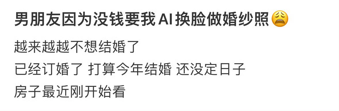 男朋友因为没钱要跟我AI换脸做婚纱照