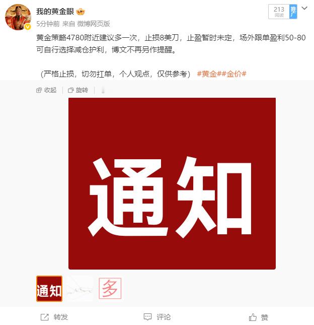 黄金策略八连胜!之前布局的4780附近的多单,目前现价来到4789,依旧稳健盈利!我是吃足百点利润了。但凡跟上节奏的,这波利润几十点随便都吃到了吧?没跟上的朋友千万别灰心,交易路漫漫,机会有的是!每天博文福利就那么几单,怕错过那就把关注点上,再错过就把特别关注点上,还错过那没办法,加入实盘一对一实时指导爽快吃肉吧,实盘咱们都是入场离场点位随时通知,那真是肉喂到嘴边,只要你执行力到位张嘴就是吃。黄金金价