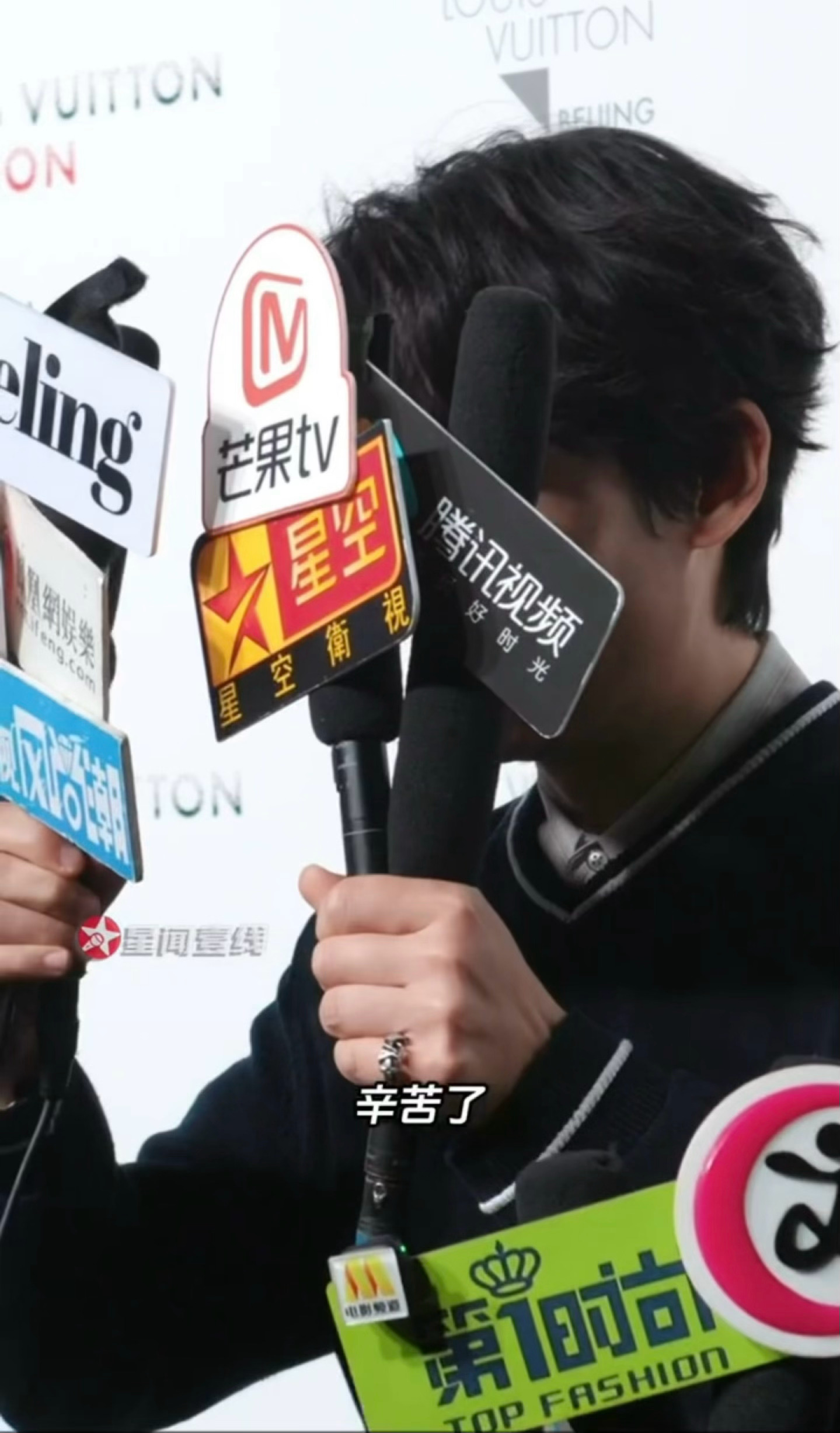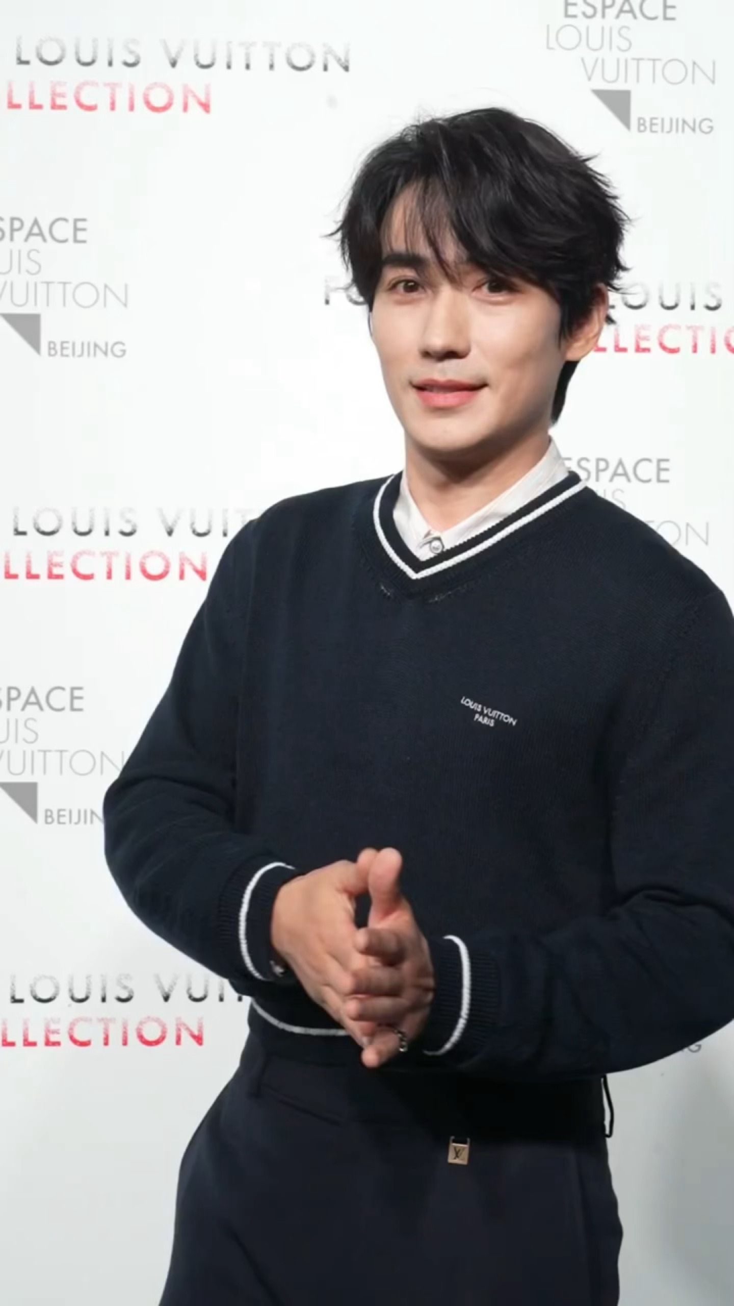 朱一龙北京lv活动路透 朱一龙听到麦举高一点调皮挡脸