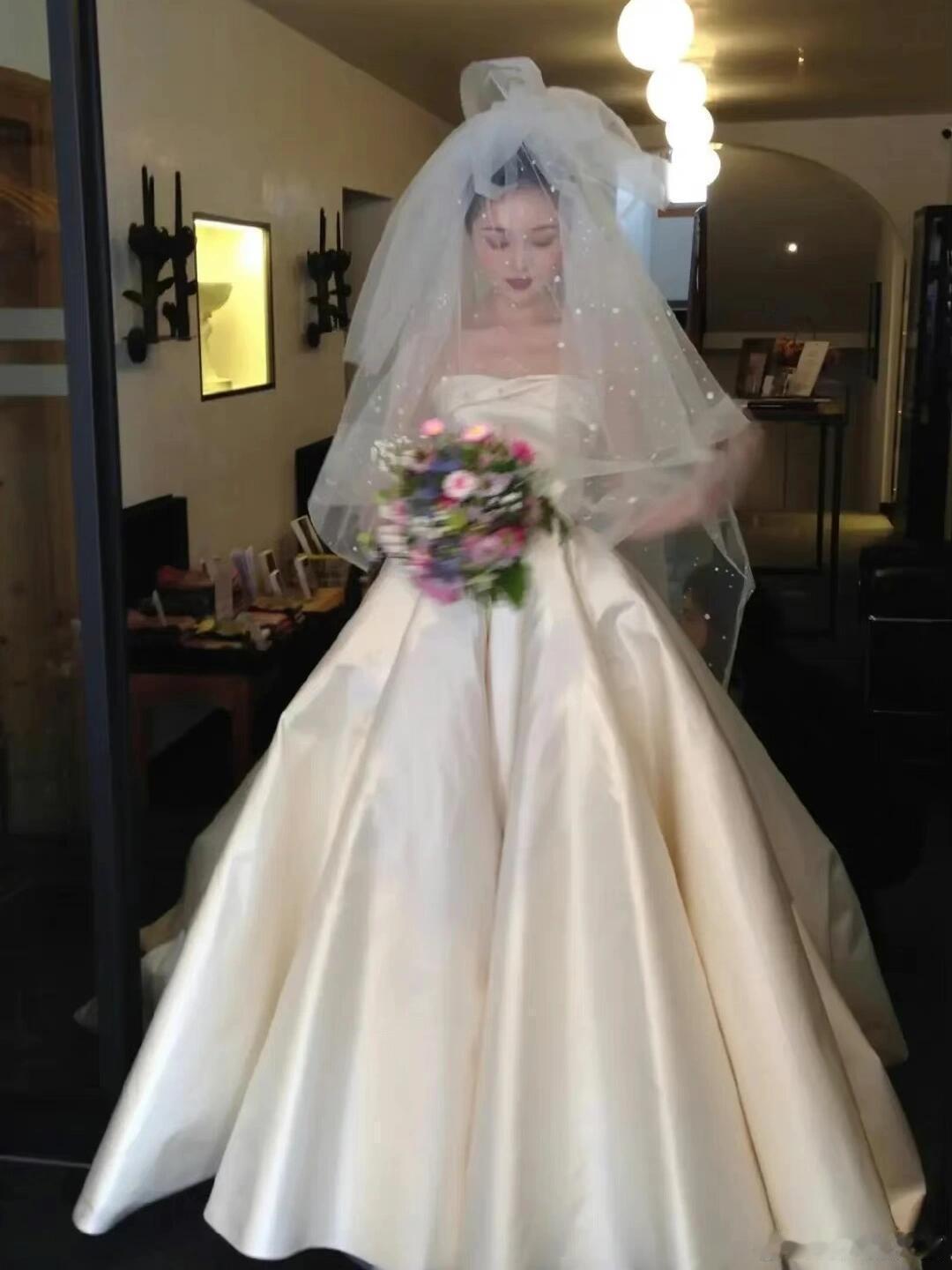 再看一遍晚晚的古堡婚礼缎面婚纱,还是觉得好美