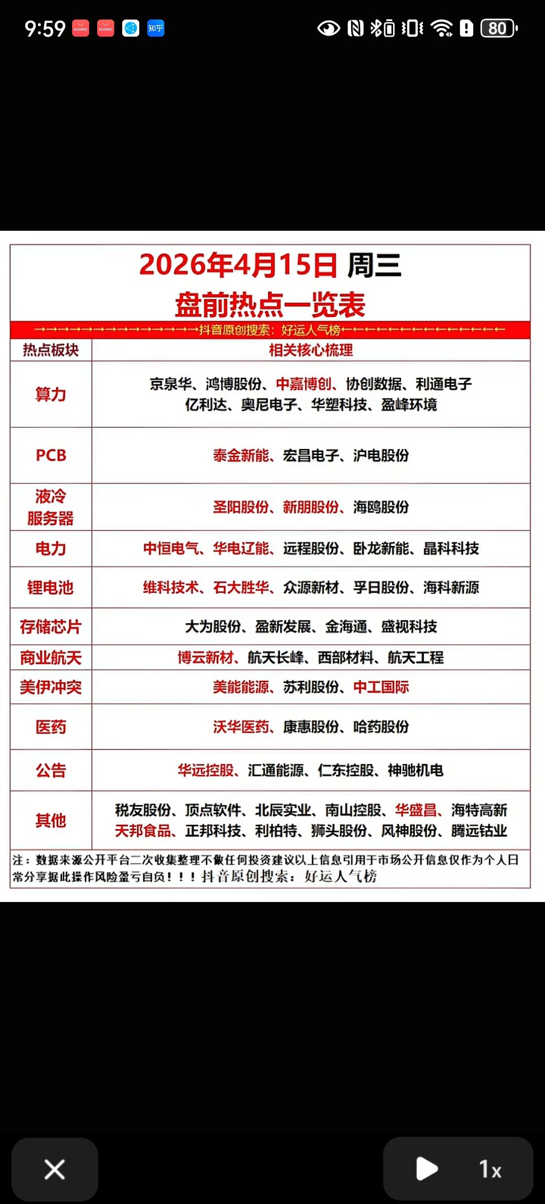 2026年4月15日盘前热点解析 4月15日盘前热点聚焦科技成长主线,算力、PCB、液冷服务器等核心赛道受益于产业升级与需求爆发,成为市场关注焦点,具体解析如下: 一、核心主线:算力产业链景气度拉满 算力板块是当前核心热点,背后是全球AI算力缺口持续扩大与政策双重驱动。谷歌上调2026年TPU芯片出货量至600万颗,叠加算力租赁价格跳涨,印证算力供需紧张格局。政策端,工信部推进普惠算力赋能专项行动,明确算力普惠化发展方向,京泉华、鸿博股份等标的直接受益于算力基础设施建设与算力租赁需求爆发。 二、细分赛道:多方向齐迎催化 1. PCB板块:AI服务器升级推动PCB向高多层、高阶HDI演进,单机价值量显著提升。叠加上游覆铜板涨价传导,行业景气度持续上行,泰金新能、沪电股份等企业凭借高端产能优势,有望充分享受行业红利。 2. 液冷服务器:AI芯片功耗攀升至980W,液冷从“可选”转为高端算力“必选项”。第四届数据中心液冷技术大会即将召开,叠加海外巨头全液冷方案落地,圣阳股份、海鸥股份等标的迎来订单落地与估值修复机遇。 3. 新能源与配套:锂电池受益于中游排产环比增长,锂电材料价格回暖;电力板块受算电协同政策推动,中恒电气、晶科科技等绿电企业迎来协同发展机遇。 三、风险提示 热点板块短期涨幅较大,需警惕情绪退潮后的回调风险。同时需关注4月15日一季度经济数据公布情况,若数据不及预期,可能引发市场风格切换,建议理性看待板块轮动,避免盲目追高。