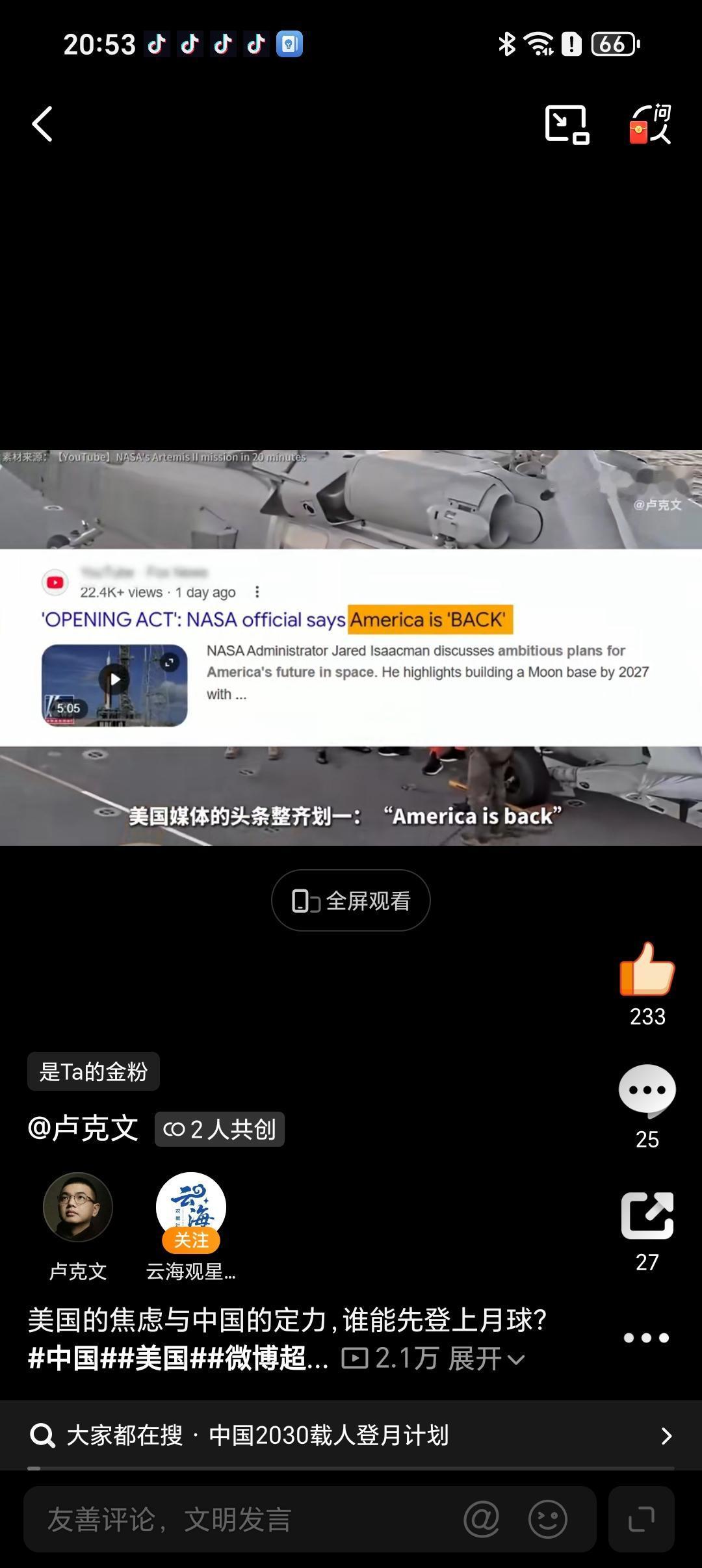 阿尔特密斯2号大大振奋了美国上下的军心士气,让他们对赢得他们心目中的登月竞赛信心倍增。但是从工程的角度看,它几乎是无效的。首先要强调,这一次,猎户座飞船根本没有进入还月轨道,只是走了一个自由返回轨道,利用月球的引力自主返回地球,这个轨道跟中国2014年发射的嫦娥5号飞行实验器是一个原理,当时中国就是为了测试返回大气层的时候打水漂。美国在阿尔特密斯1号已经测试了打水漂,发现防热大盾有问题,而这次并没有改进,只是用四个活人去测试他们的运气,这次幸好运气还可以,算是有惊无险,另外就是测试出来厕所系统确实不太靠谱。所以中国人绝对搞不出阿特密斯2号这种无效又冒险的东西,他纯粹是一个政治献礼工程,因为一拖再拖的阿尔特密斯工程,必须要让人看到进展。 在中国的计划里面也不包含载人掠月这样的计划,中国在长征10号首飞之后,就会进行无人登月,然后就是载人登月,连单一的载人绕月都可能不会有。