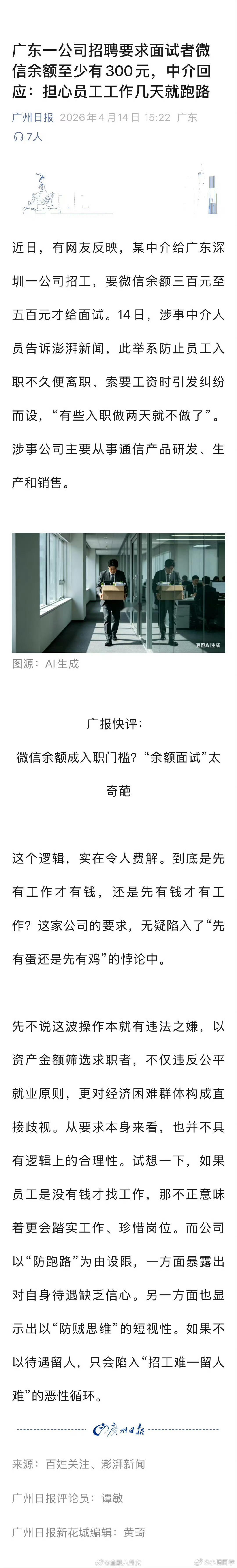 人社局回应查看微信余额才能进面试什么奇葩单位面试还要看人家微信余额的啊?我看了