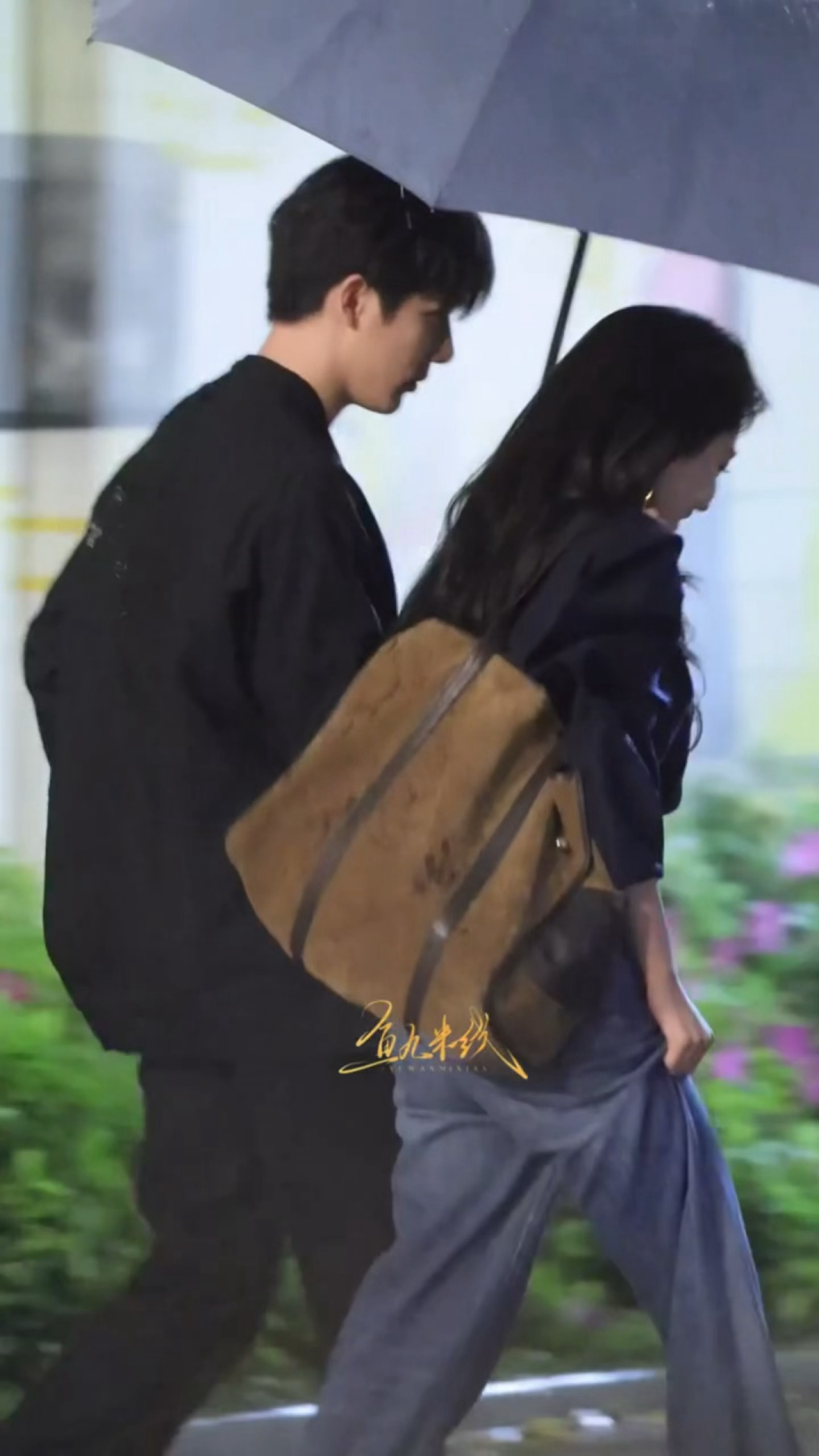 王安宇章若楠雨夜氛围感路透王安宇雨中撑伞接章若楠路透