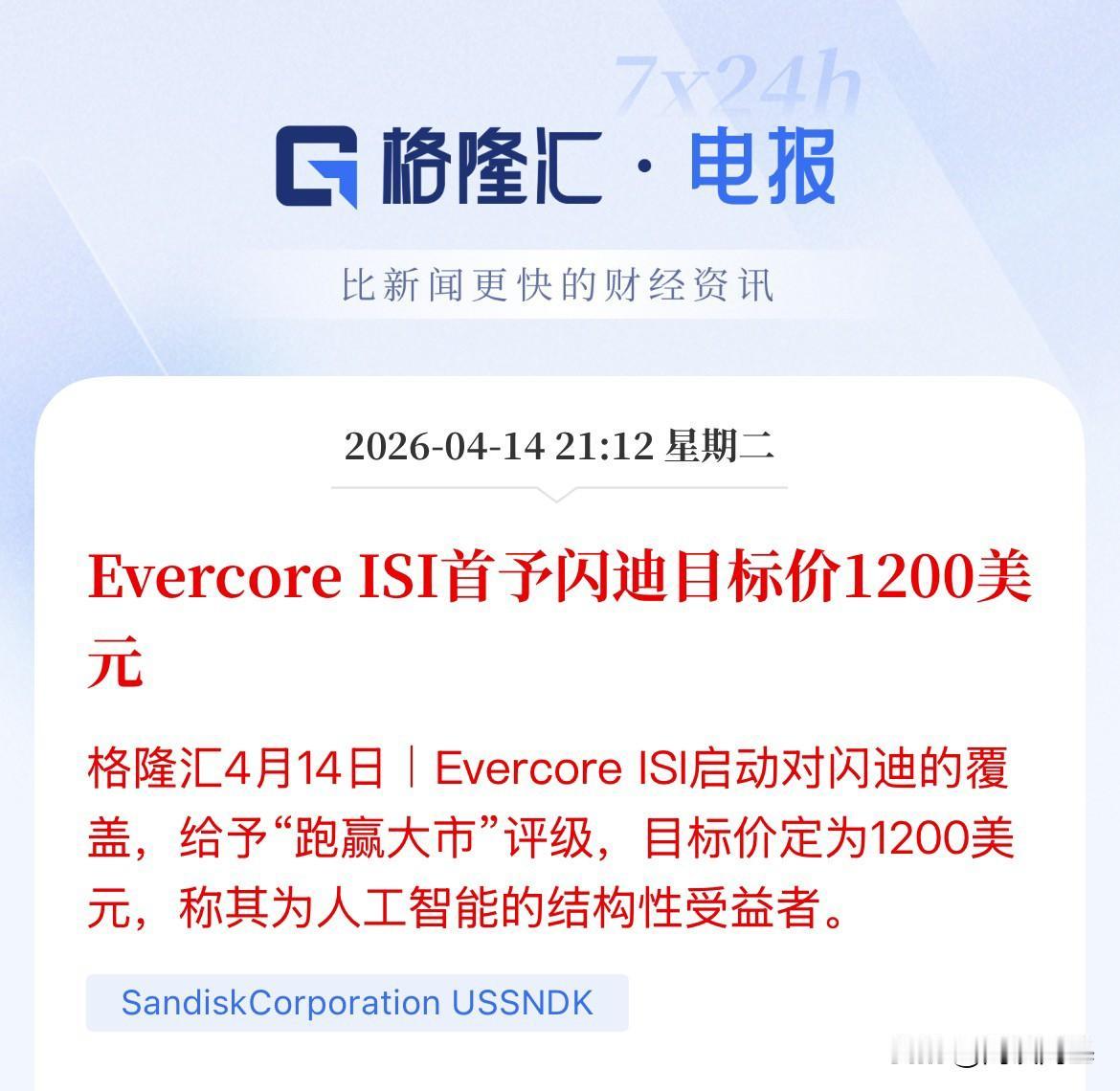 存储概念利空,闪迪吓崩了,美股开盘,闪迪跌幅超3%,盘中一度跌幅5%,闪迪被定义为人工智能的结构性受益者,Evercore ISI把闪迪评级为“跑赢大盘”,目标价大幅上调至1200美元,当前才900美元,预期还有300美元的涨幅 存储概念大涨,闪迪作为标志性龙头,本月已经累计涨幅42%,今年以来累计涨幅已经超280%了,从2025年5月的上市以来,累计涨幅1800%了。