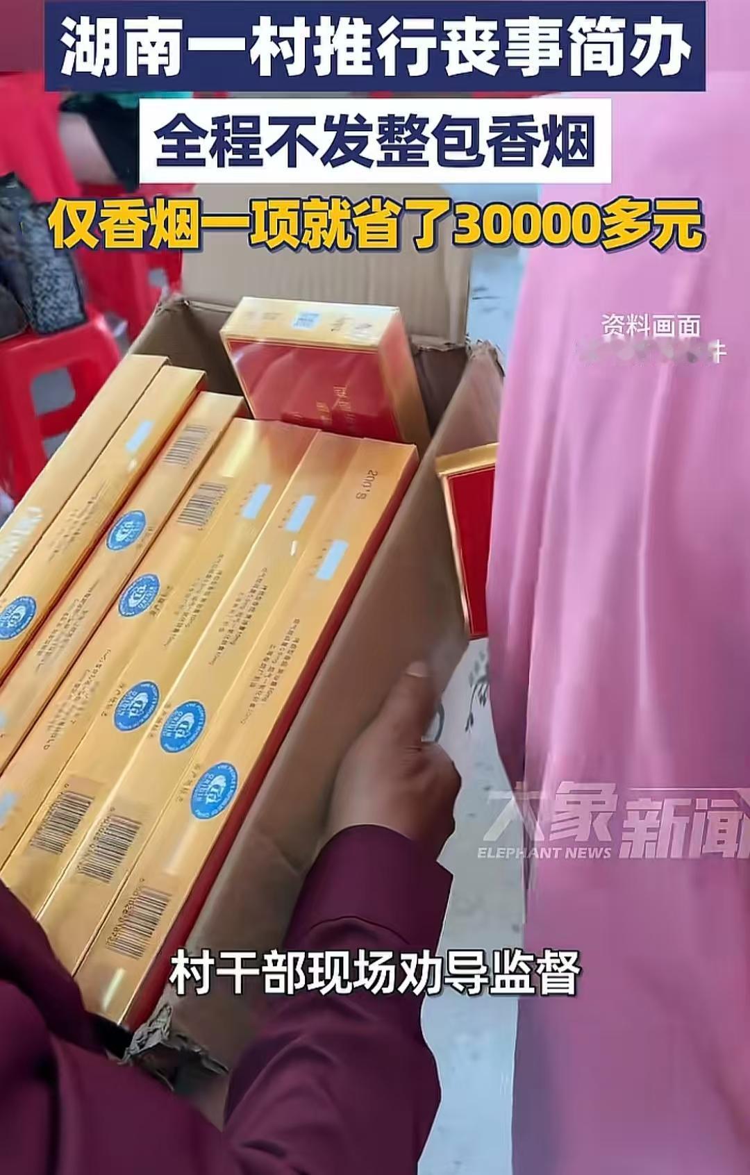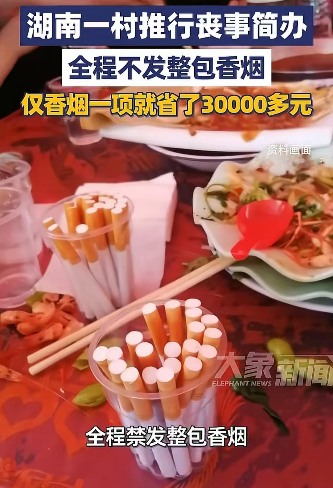 上个月我老公奶奶过世,总计花费了7万,幸好有3兄弟平均分摊,不然一个人扛,要两年才能赚到纯收益7万。想想挺可怕的。光是香烟就要3万,丧事搞3、4天,每天3餐饭,每个人还要配一包烟。做什么事情都少不了烟。村民,亲戚吃吃喝喝,玩乐就把钱给花了。这样的风气真的要改了。不敢想象,如果是独生子,丧葬两个老人都是好大的压力。 据大象新闻报道,岳阳县一村推行丧事简办,村干部现场劝导监督,全程禁发整包香烟。前不久村里一位老人去世,丧事按照新规,简化流程,缩减宴席,光香烟就省下可3万多,总开销减半,累计减负超4万元。村民表示不用攀比更轻松。这才是惠民政策!