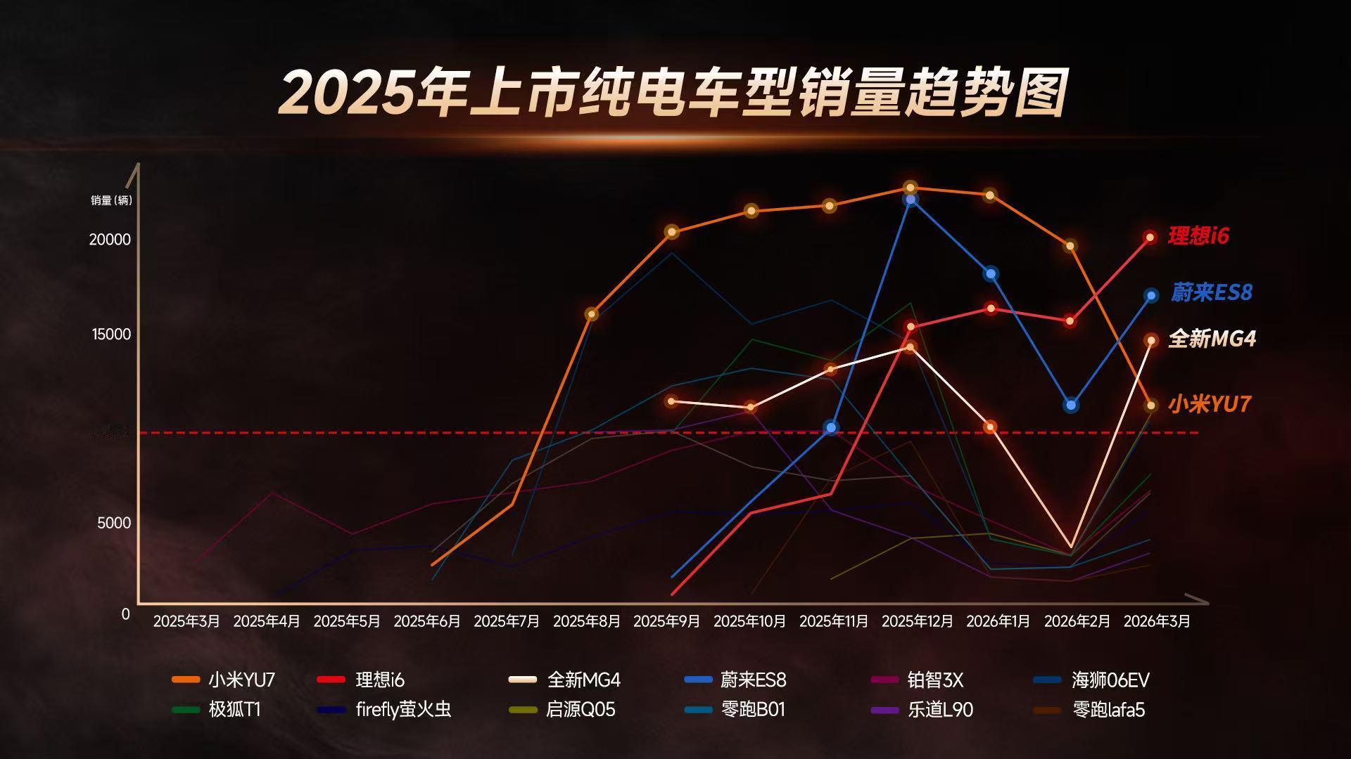 百款新车仅4台纯电爆款 都说新能源赛道卷,卷到最后看销量。2025年上市的纯电车型中,能持续热销超过三个月的,满打满算只有四款:小米YU7、理想i6、蔚来ES8、全新MG4。多数新车“火不过三个月”——上市刷屏,随后销量滑坡,已成常态。这四款爆款逻辑各不相同:YU7吃准年轻用户的身份认同;i6把家庭出行痛点摸得透彻;ES8靠换电+大空间守住高端基本盘;MG4最实在,半固态电池、热管理系统直接下放10万级。红海里杀出来的黑马,靠的不是运气,是把基本功做到位。