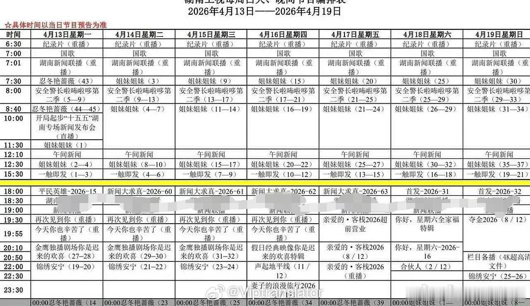 现在芒果晚间档上新只剩下:黄金档电视剧、好六、客栈4、妻子8、合伙人2。湖南省拨钱办的周日任务创业节目、哈萨克斯坦给钱办的任务音综。