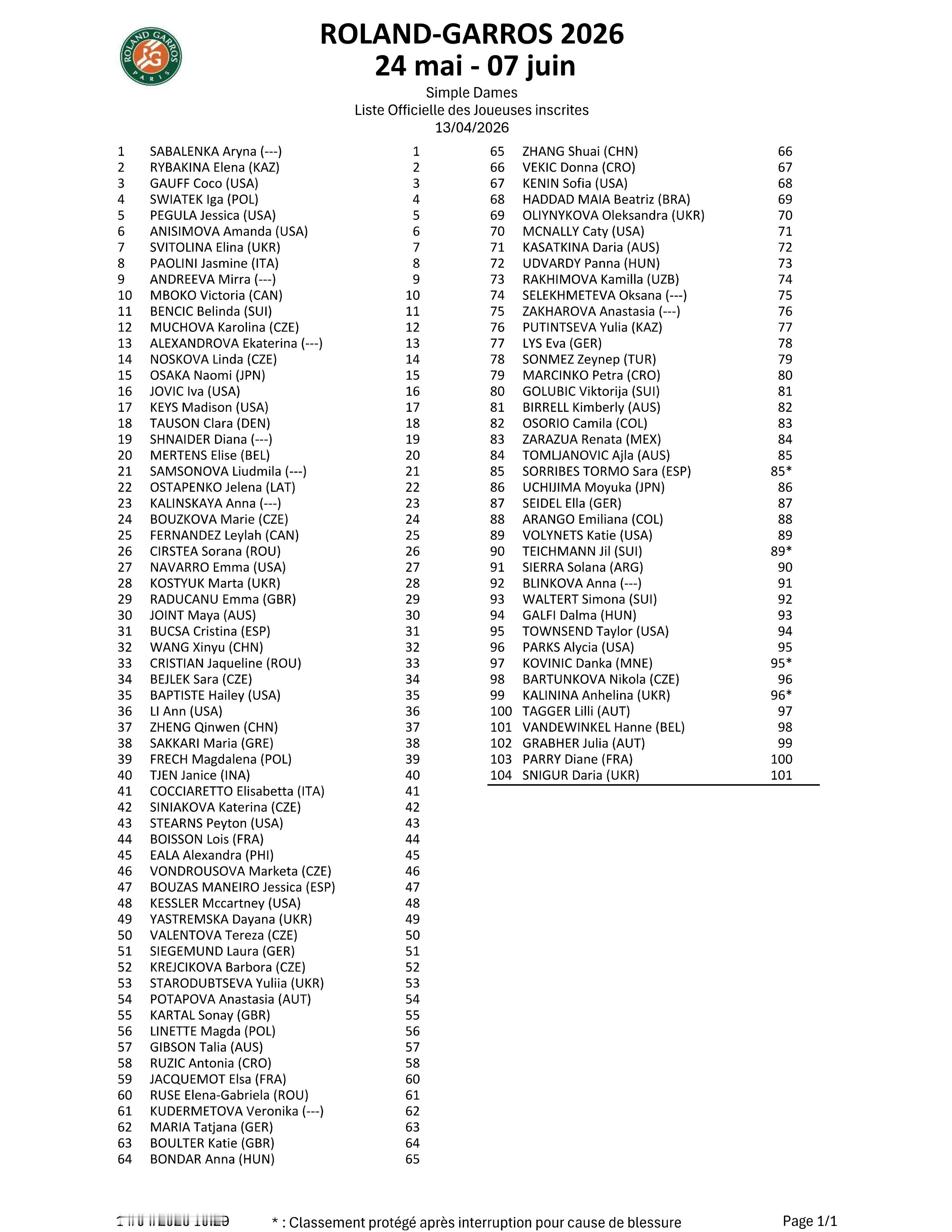 网坛风云法网女单公布入围名单,萨巴伦卡、莱巴金娜领衔众将,王欣瑜、郑钦文、张帅