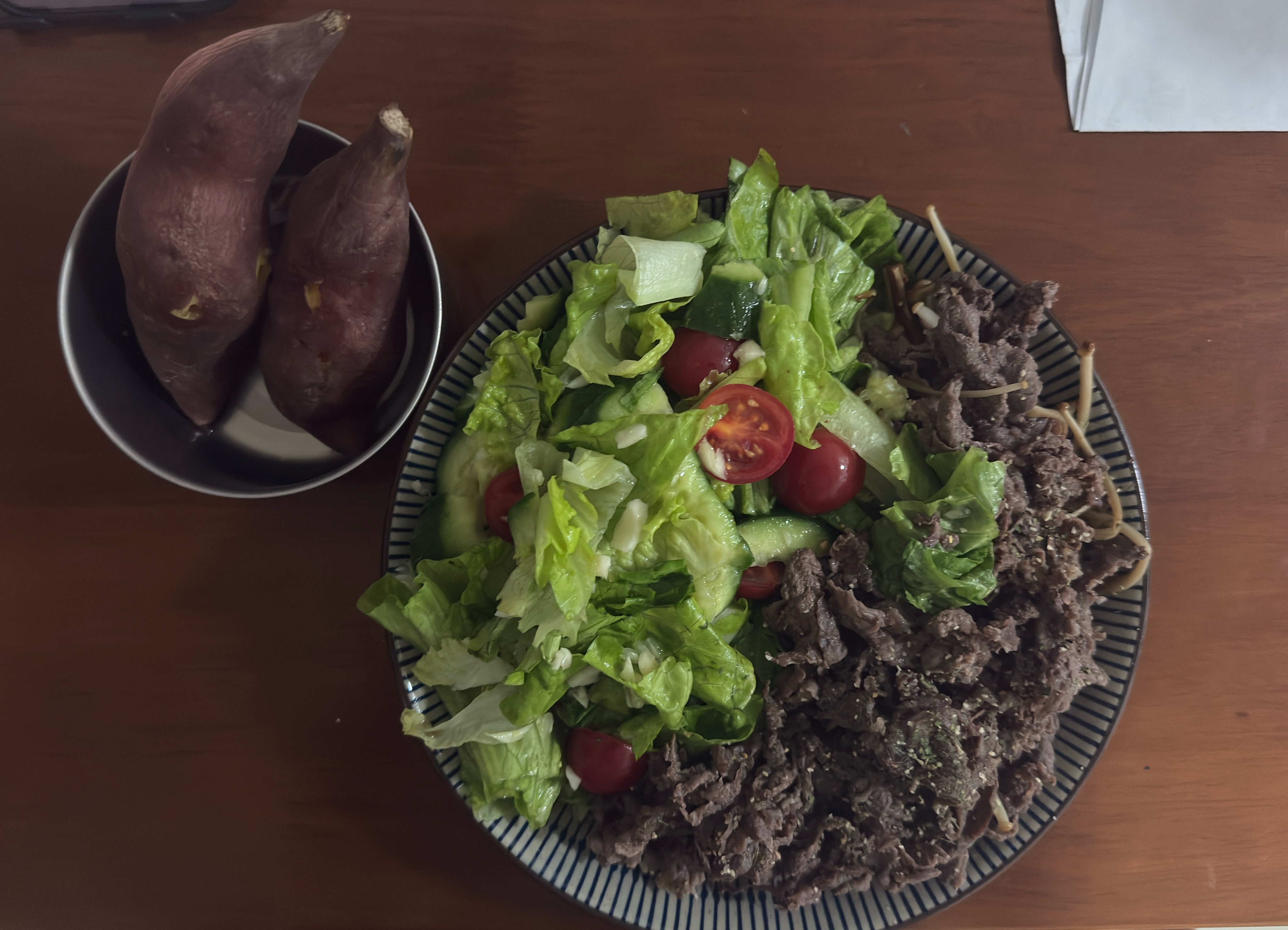 晚饭吃的啥?最爱的中国版“沙拉”以及牛肉以及红薯🍠说好减脂的来打卡了,第3️⃣