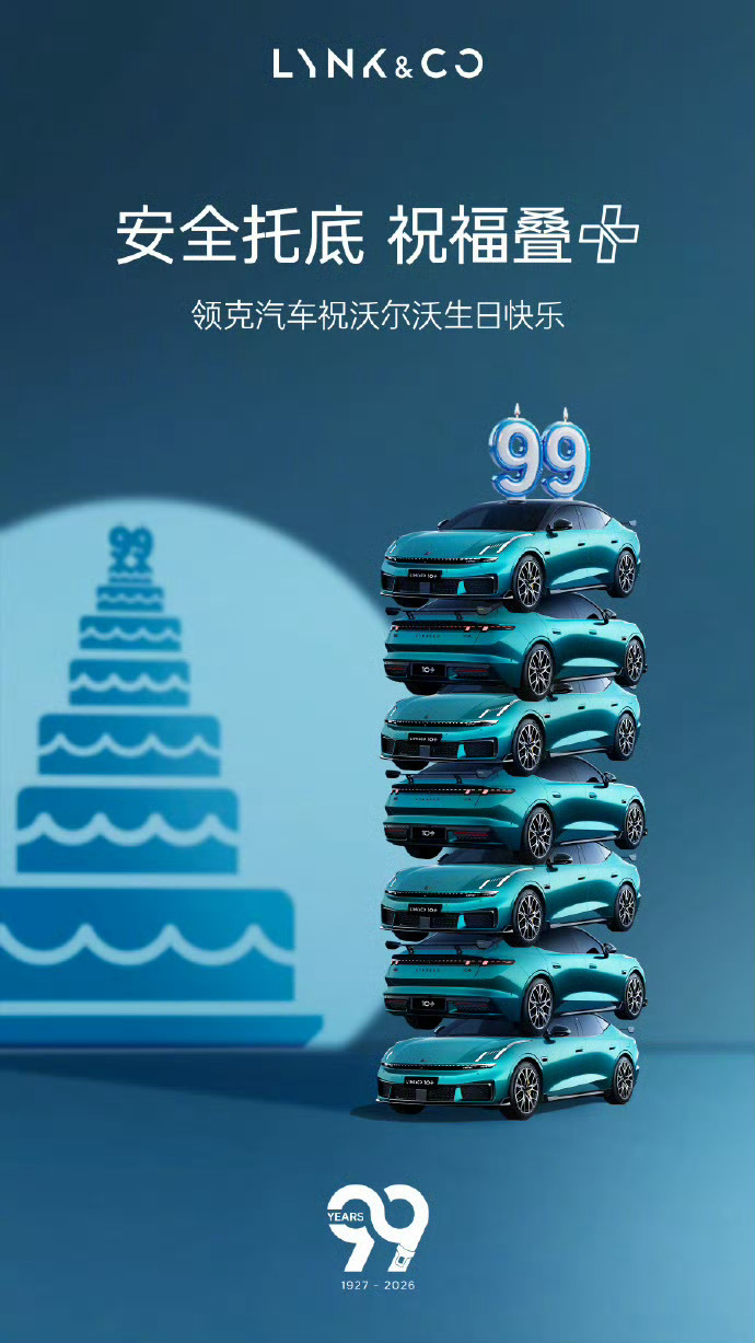 多车企祝沃尔沃99岁生日快乐 又是车圈难得一见的集体致敬,许多车企都专门做了海报,还各有各的风格。