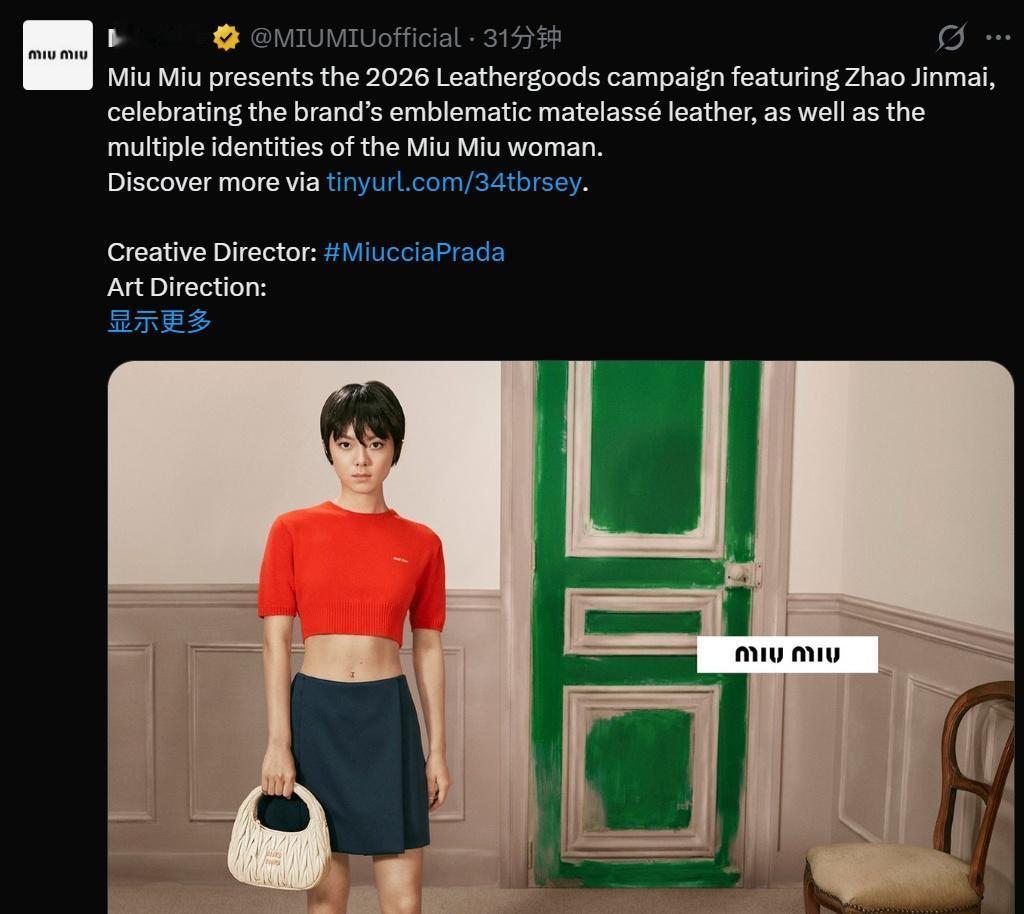Miu Miu海外社媒官方ins、黑X认领赵今麦2026手袋全球广告大片,亚太各国各地区官网版头也焕新刷脸,加之这一波地广快速铺开,线上线下海内海外密集出手一气呵成~