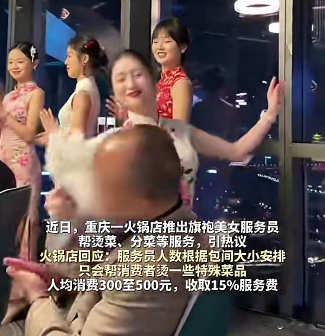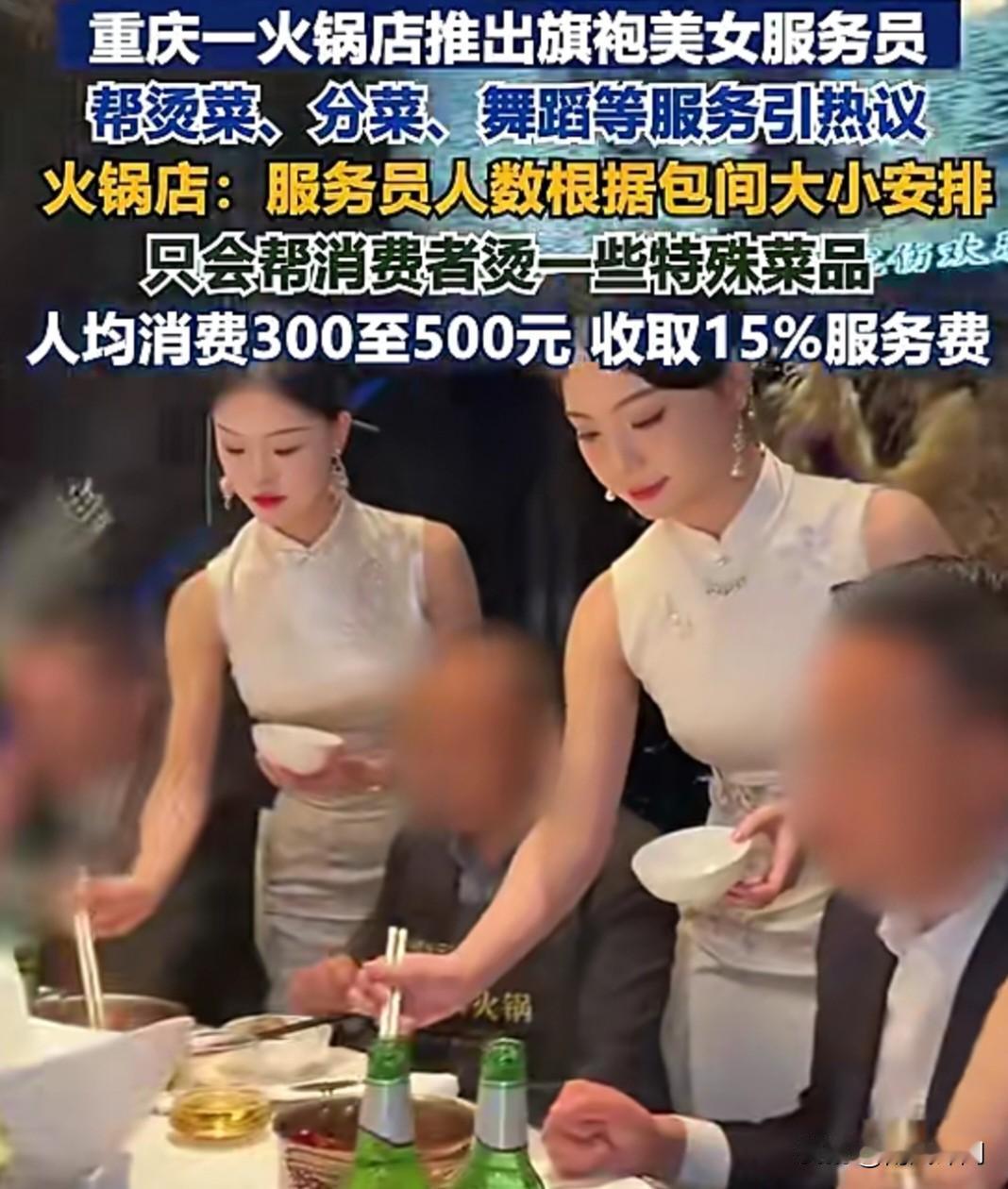 重庆火锅又整新活,直接冲上热搜!近日,当地一家火锅店推出特色服务:身着旗袍的美女服务员,全程帮顾客烫菜、分菜,主打贴心专属服务,瞬间引发网友激烈争论。 店家回应,服务员数量会按包间大小安排,并非全程过度服务,只帮忙涮煮毛肚、鸭肠这类讲究火候的特殊菜品。店铺人均消费300-500元,除此之外,还要额外收取15%的服务费,这笔收费成为争议焦点。 网友们看法直接两极分化: 支持方觉得很值:“吃火锅最怕煮老食材,有人专业帮忙太省心,旗袍服务氛围感拉满,花钱买体验很合理”“商务宴请、朋友聚会超有面,服务到位收费也正常”。 反对方直言没必要:“吃火锅就是要自己涮才有灵魂,花高价找人伺候纯属交智商税”“普通火锅硬生生做成高端消费,15%服务费太割韭菜,完全是营销噱头”。 火锅本是烟火气十足的美食,如今走上高端服务路线,有人爱仪式感,有人嫌没必要。 大家觉得,花高价享受这种专属烫菜服务,到底值不值?