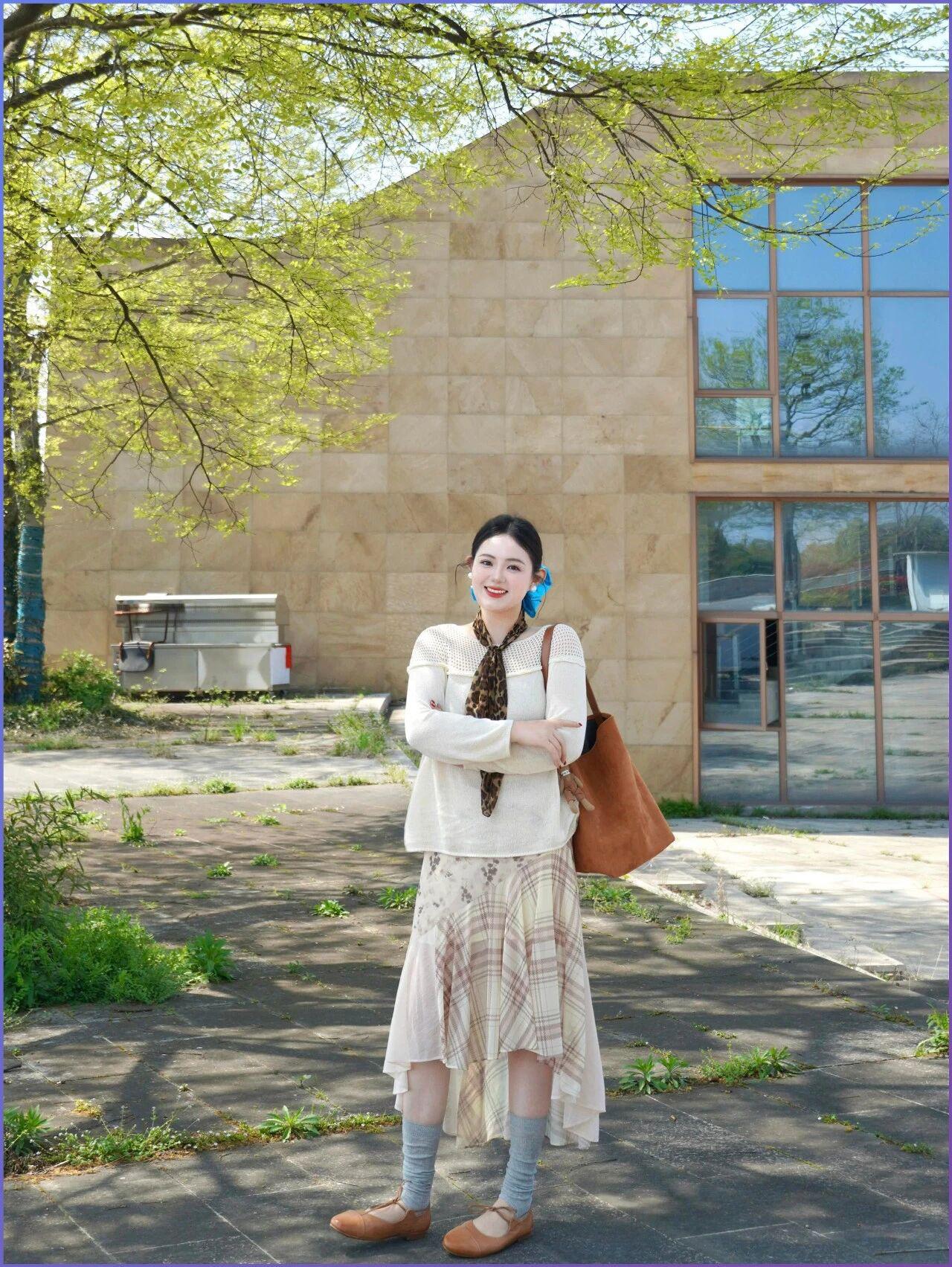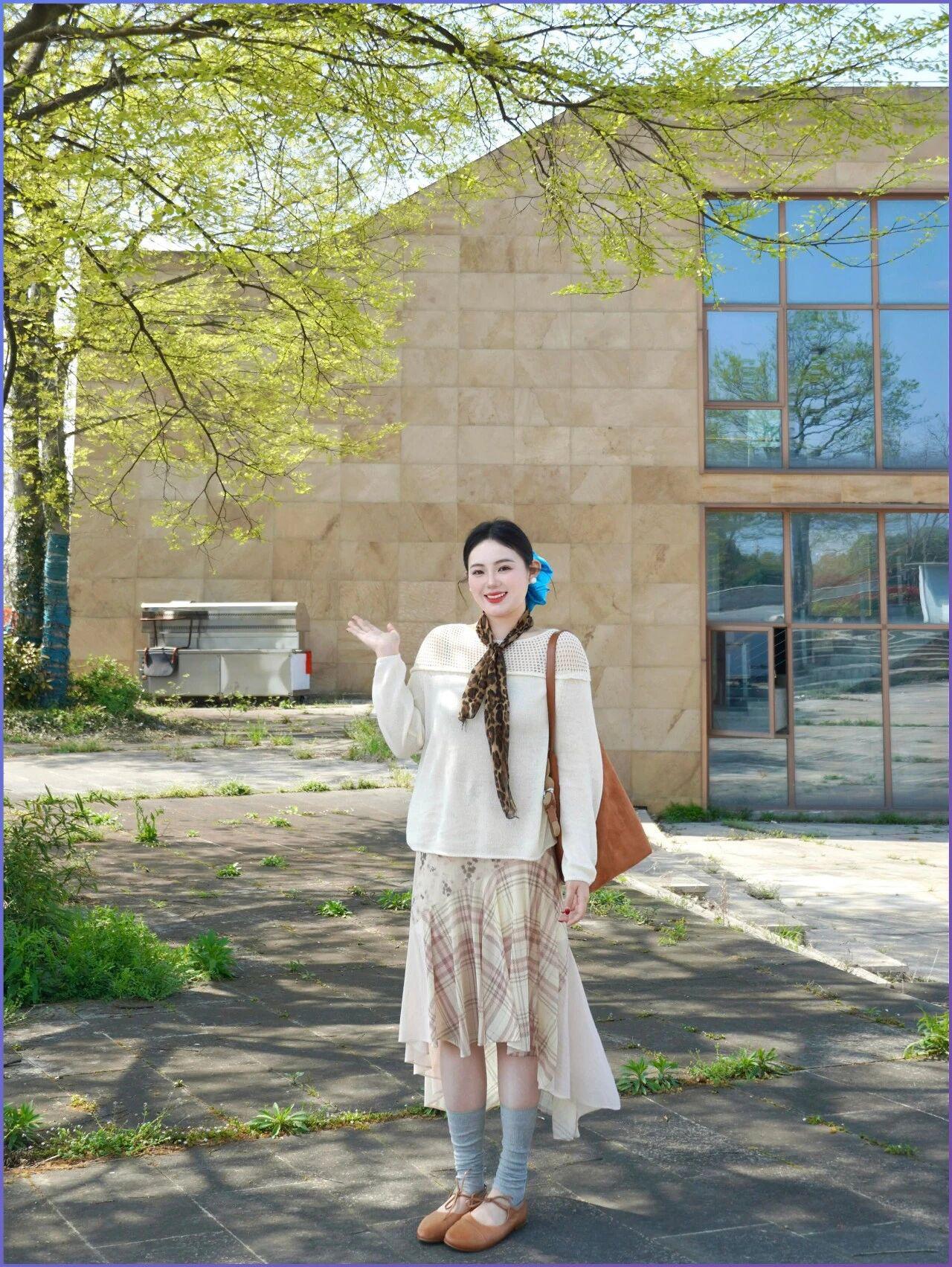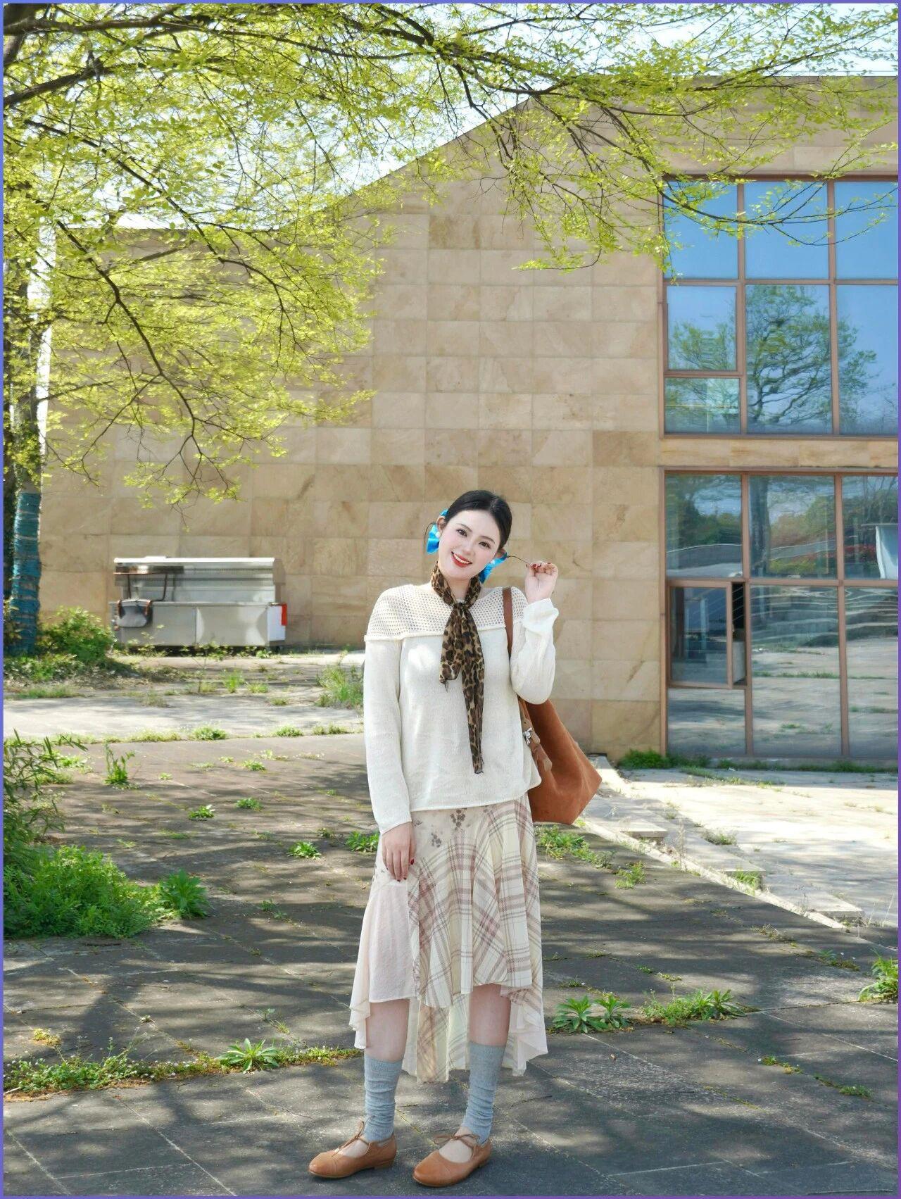 知性美女穿搭分享这套燕麦色穿搭完美诠释了成熟女性的优雅与知性。修身针织上衣贴合身