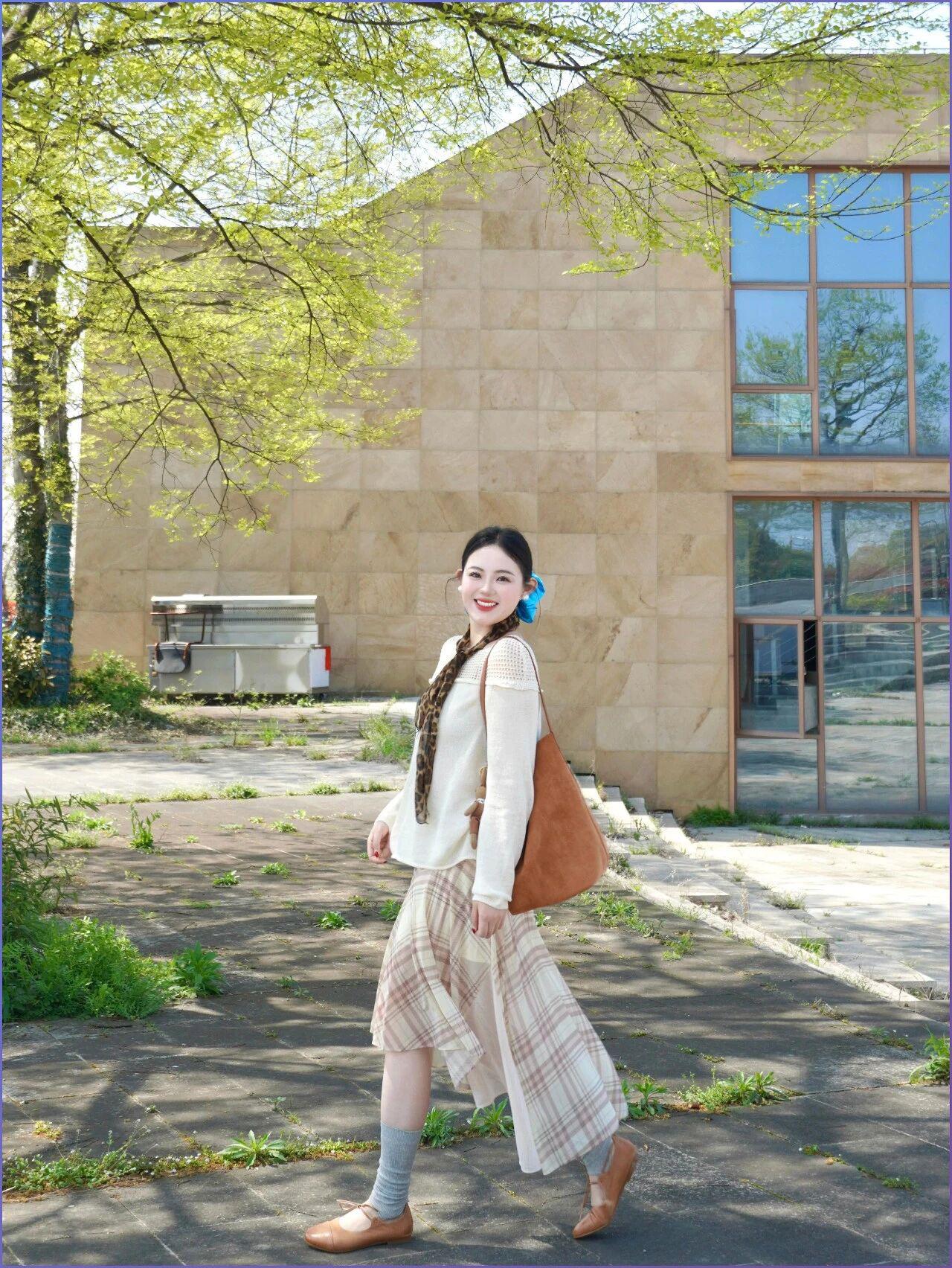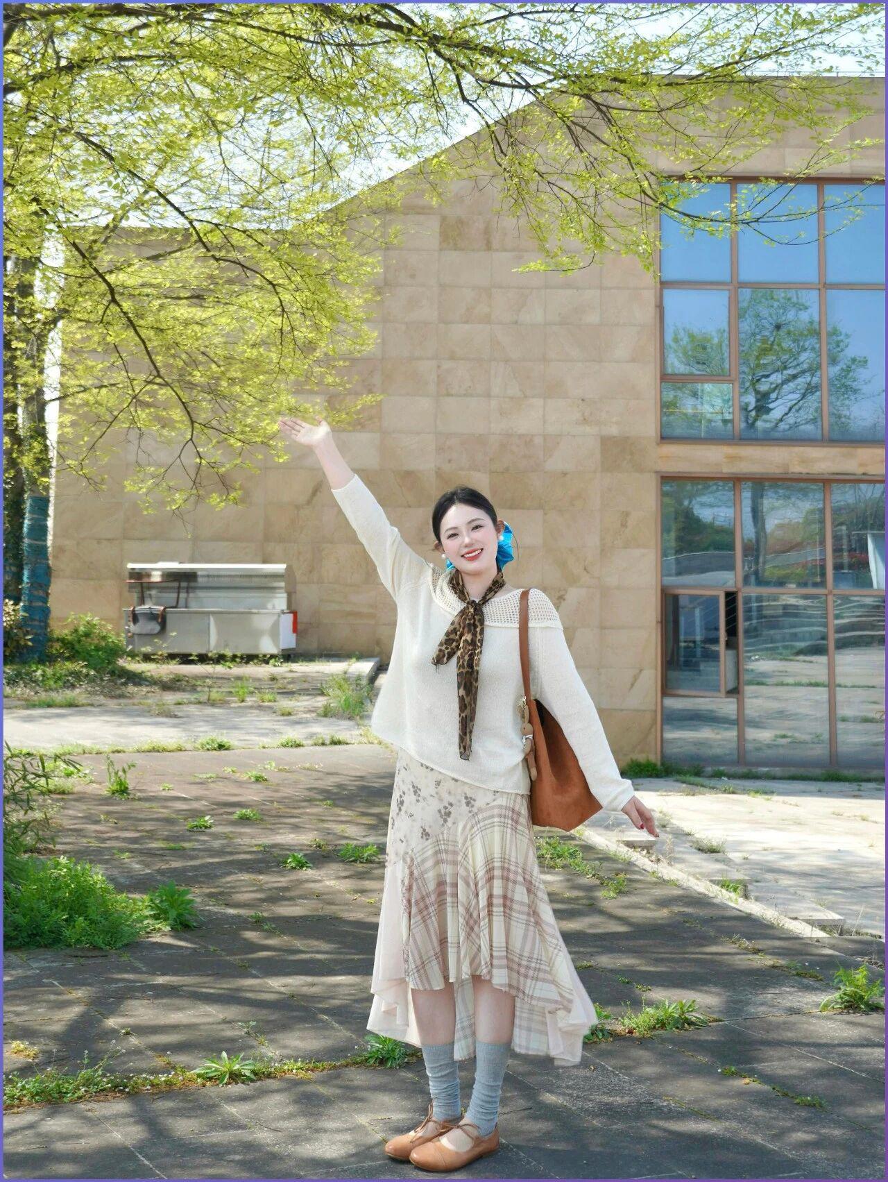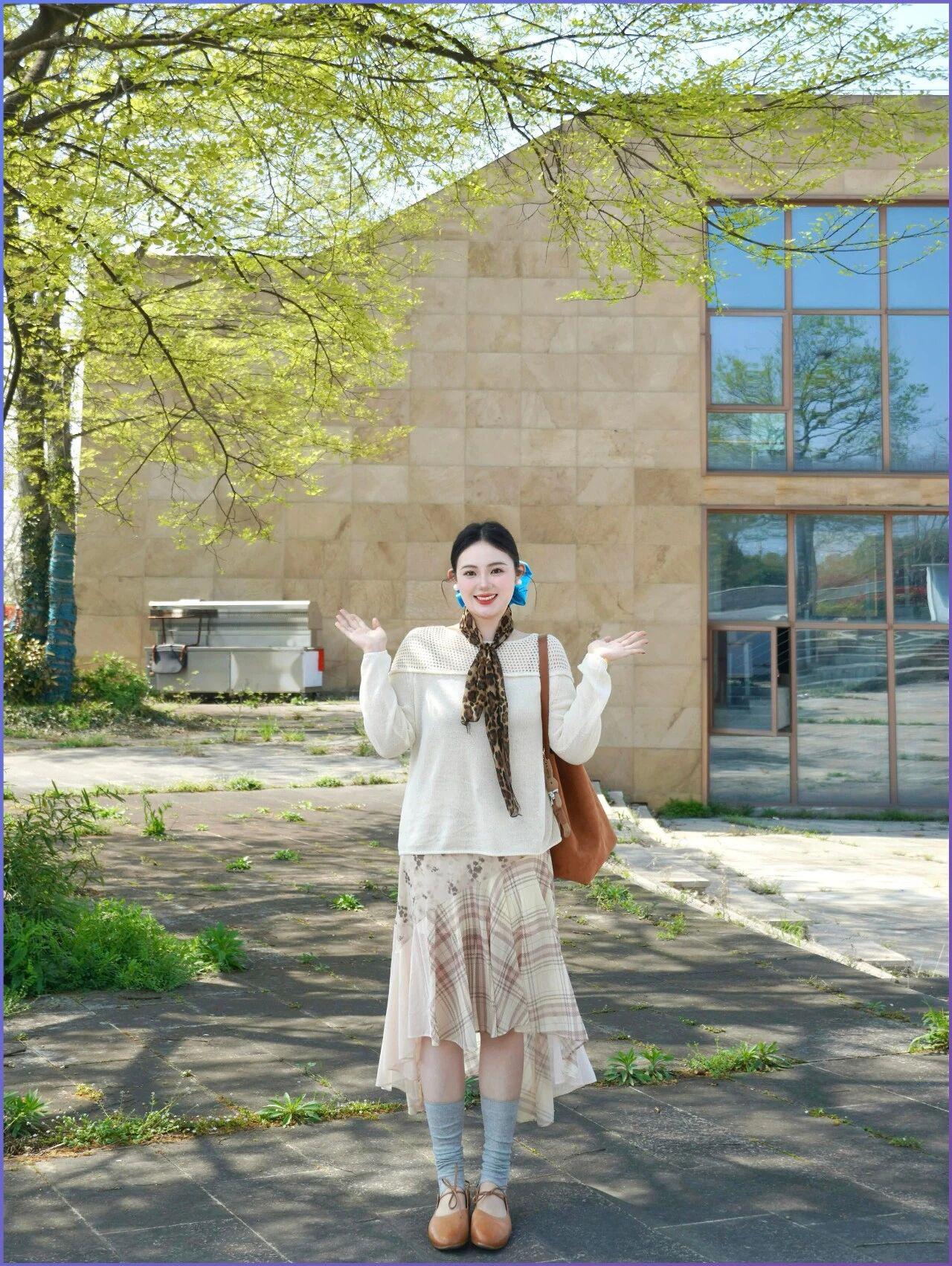 知性美女穿搭分享这套燕麦色穿搭完美诠释了成熟女性的优雅与知性。修身针织上衣贴合身