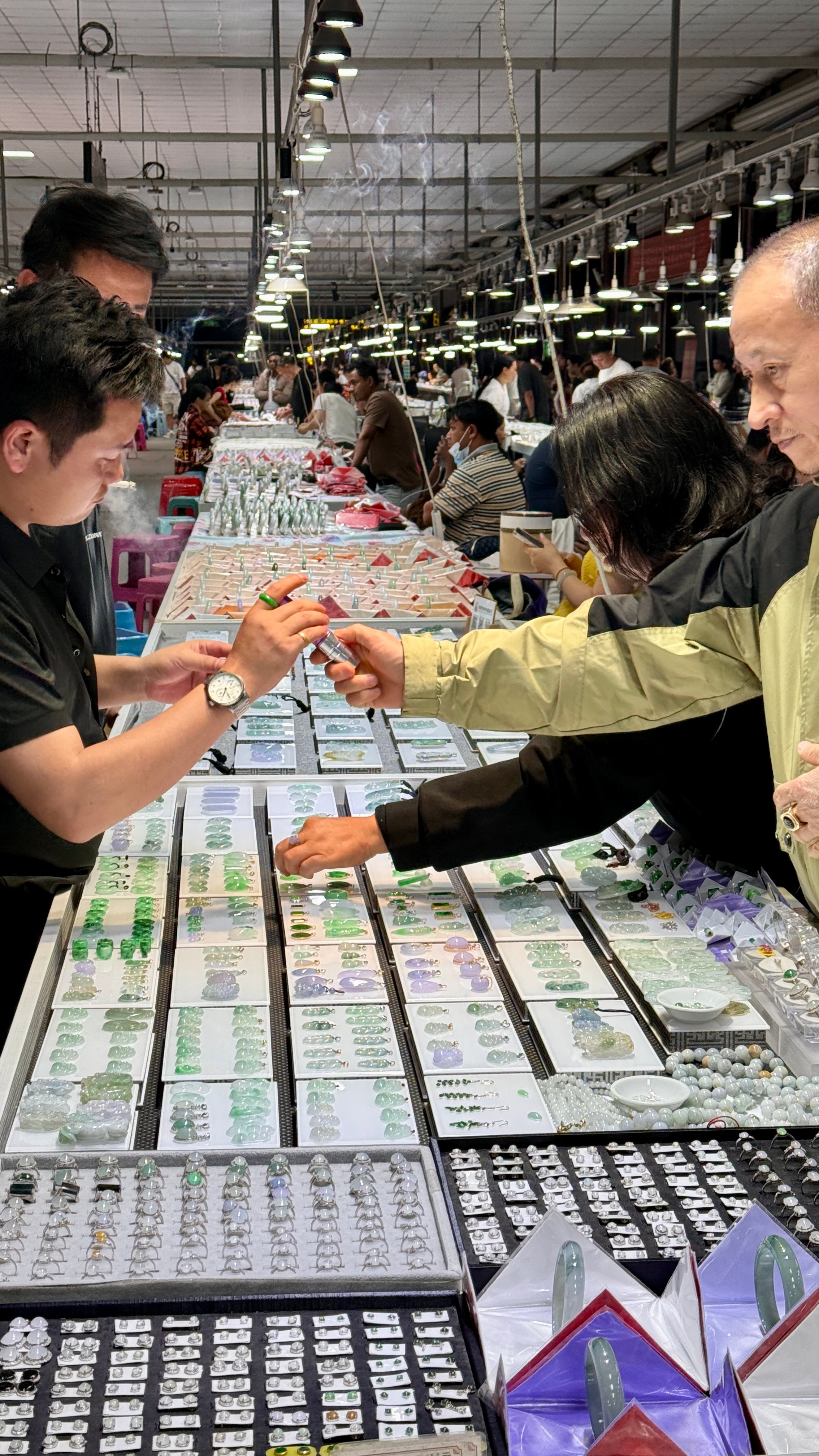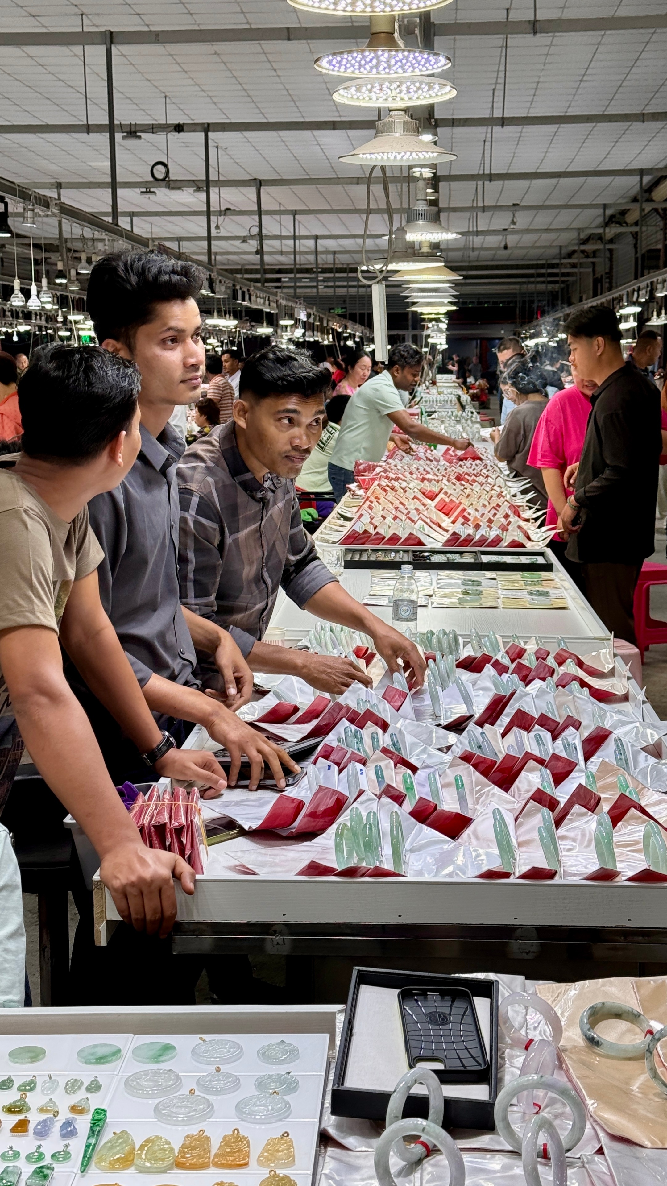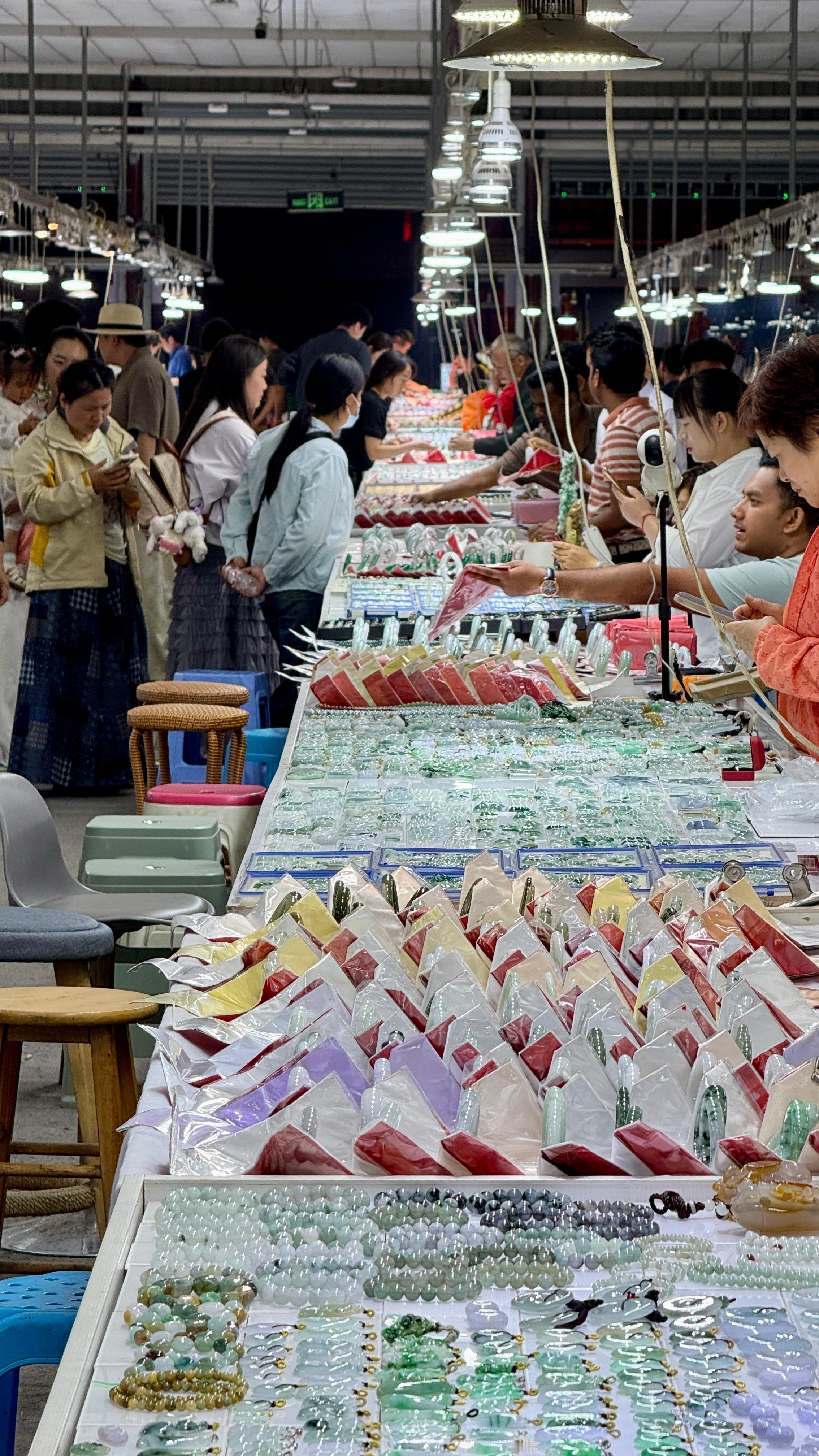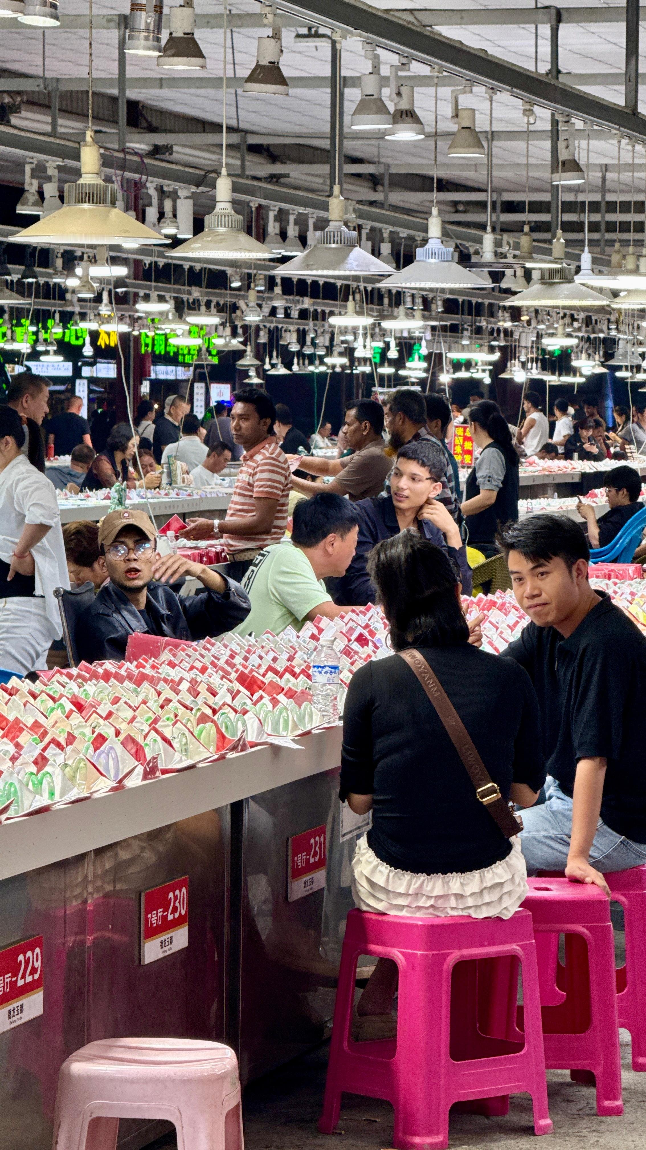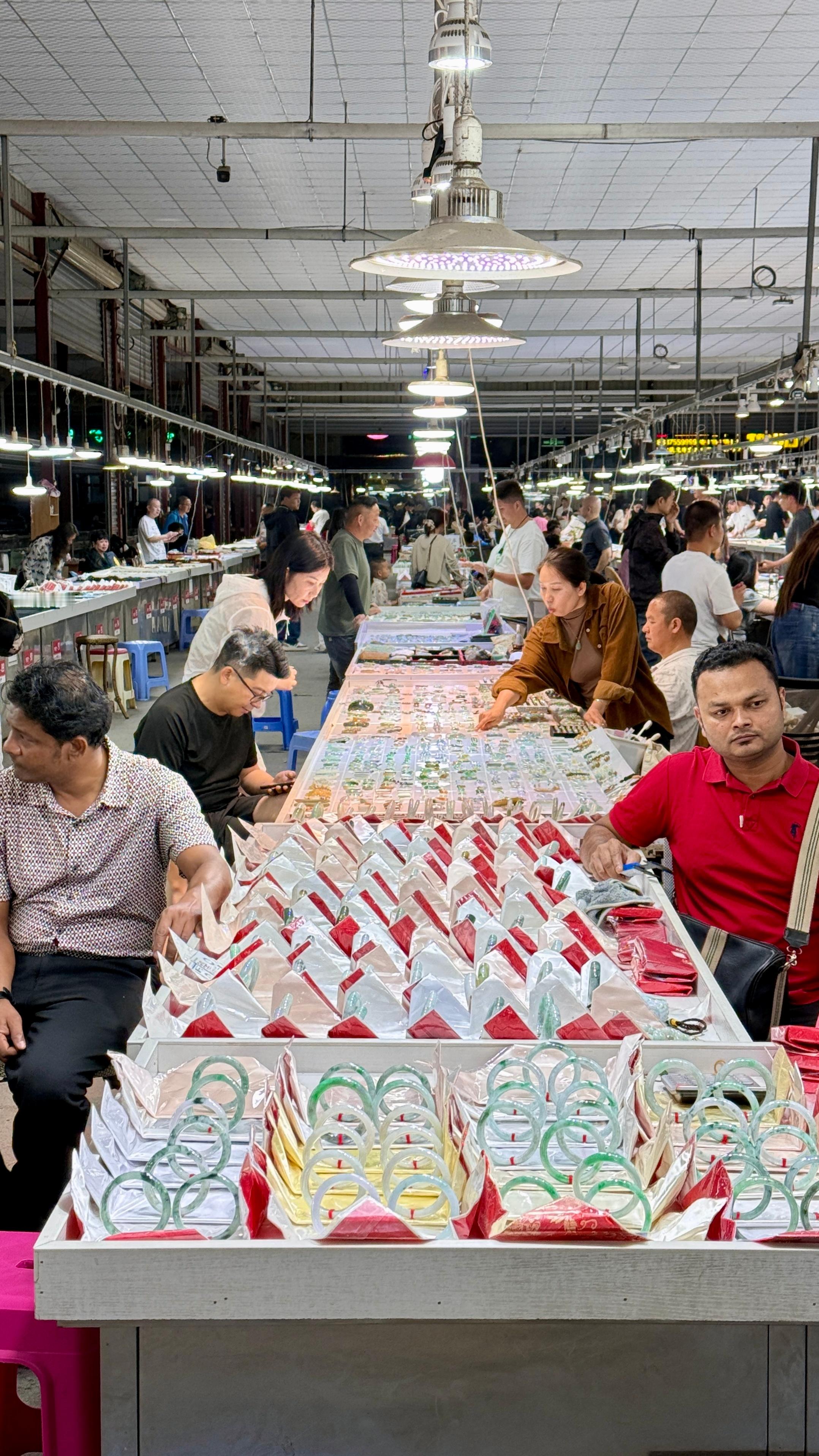 跟着豆花客人一起来瑞丽翡翠市场逛逛,这里是国内规模很大的翡翠集散地,行业地位没得说。大家聊起现在的行情,都说金价银价偏高,反倒觉得翡翠更值得看看。本来晚上我想早点休息的,非要拉着我一起凑热闹,让我顺便帮着参考参考、讲讲价,好吧!那就陪你们感受下源头市场的氛围吧!云南旅游攻略君云南翡翠云南特产 瑞丽