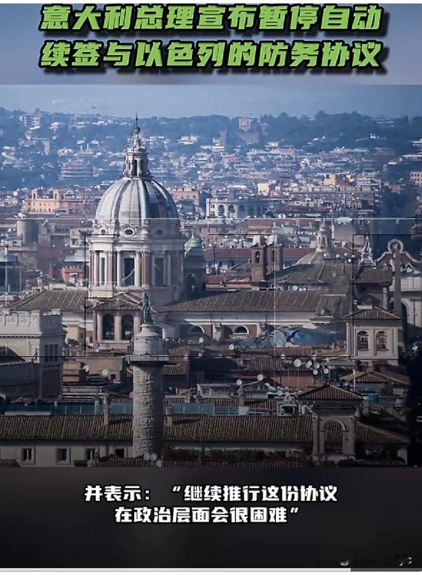 4月14日,据意大利安莎社报道,意大利总理梅洛尼当天表示,意大利政府基于当前局势,“已决定暂停自动续签与以色列的防务协议”。 一位意大利外交相关消息人士向法新社证实,该协议已被暂停,并表示:“继续推行这份协议在政治层面会很困难。” 意大利暂停与以色列的防务协议,标志着两国关系出现了裂痕。这不仅是针对具体事件的回应,也反映了欧洲内部对以色列军事行动日益增长的担忧。 此举被认为是意大利对以色列军事行动的直接外交抗议: 上周以军袭击了包含意大利士兵的联合国驻黎巴嫩维和部队(UNIFIL)车队,意方召见了以大使,称之为“不可接受”。 意外交部长在贝鲁特公开谴责以色列对平民的“不可接受的攻击”,此举引发以色列不满并召见了意大利大使。 目前是暂停 “自动续签” ,属于一种渐进施压手段。该协议主要涉及军事装备与技术交流,最近一次续签在2021年,本应在2026年4月13日到期自动续签。通过叫停续签,意大利在不完全撕毁协议的前提下暂停了军事合作。 此事件标志着欧洲风向转变:意大利并非孤例。德国总理也刚表达了对约旦河西岸局势的“严重关切”。这表明在欧洲内部,原本力挺以色列的立场正因人道主义关切而出现松动。此前意大利已停止新的武器出口,现在是进一步升级。 虽然意大利对以军售规模不大,但这政治信号极强。作为以色列的传统欧洲盟友,梅洛尼曾是内塔尼亚胡的密友。此次“暂停”标志着双边关系从“亲密合作”转向“外交施压”,意在呼吁停火并重返谈判。 欧洲本来就是以色列除美国之外的政治大本营,由于以色列在中东地区的持续战争,造成该地区严重的人道主义灾难。欧洲的关注和对以色列的批评,引起以色列的强烈反弹,致使关系日渐恶化。没有了欧洲的支持,以色列就被这个世界彻底抛弃。即使美国想袒护,也不能不有所顾忌。 内塔尼亚胡孤注一掷,四面树敌,众怒难犯,正在作死的道路上一路狂奔。