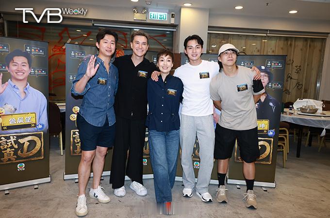 (左起)曾展望、朱敏瀚、江美儀、周嘉洛及吳業坤齊齊睇《試真D》首集。