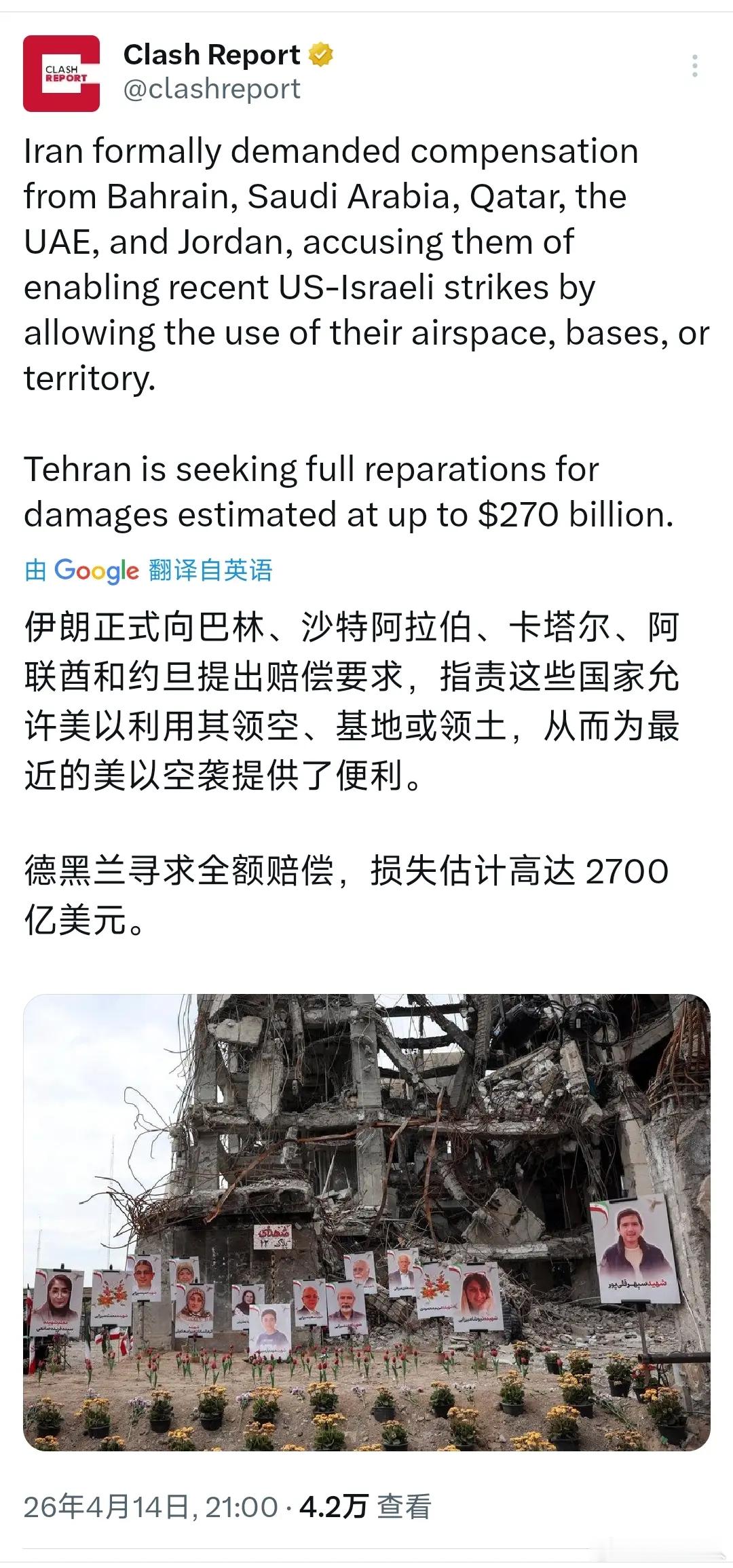 伊朗向海湾五国索赔,本质是互相免赔!前天伊朗正式向巴林、沙特、卡塔尔、阿联酋、约旦五国提出索赔,理由是这些国家开放领空、提供基地、甚至出动加油机为美以空袭伊朗提供关键支持。伊朗这个索赔本质并非真要巨额赔款,更像是互相索赔、最终彼此免赔。这次伊朗显示出灭国能力,武力定高下,海湾国家最终只能低头妥协。第一,海湾五国确是美以侵略伊朗的直接帮凶,责任无可推卸。本轮美以打击伊朗,若没有海湾国家开放领土、领空作为前沿跳板,战机航程根本无法覆盖伊朗纵深。尤其是部分国家基地让美国出动空中加油机,直接为以色列战机保障续航,等同于主动参与侵略战争。从国际法与自卫权角度,伊朗因此遭受人员、设施、经济损失,向协同攻击的第三方索赔,完全具备道义与逻辑合理性,这些国家并非无辜,而是咎由自取。所以这些国家过去说被伊朗打,那他们为什么要帮助以色列?如果真的关闭领空,当然以色列是可以打过来,但是没有海湾国家起飞的空中加油机,以色列是打不到伊朗的。第二,伊朗索赔是强硬威慑而非赶尽杀绝,在前面攻击早已明显留手。比如伊朗完全有能力瘫痪海湾国家赖以生存的命脉,类似淡水净化厂、发电厂、炼油设施、港口输油枢纽,一旦攻击,这些资源匮乏、高度依赖外部供给的国家将瞬间陷入停水停电、社会崩溃的绝境;尤其阿联酋、巴林和卡塔尔,基本上靠净化水过日子,要是打了净化水工厂,立马灾难状态。但伊朗始终克制,仅打击军事目标,基本上未触及民生根基。所谓索赔,本质是用文斗、最低成本的方式施压,既宣示主权尊严,又避免战争全面升级,给海湾国家留下退路。第三,海湾五国曾向伊朗索赔,如今伊朗反索赔,最终必然互相免赔或象征性赔付。此前冲突中,海湾国家也曾以伊朗导弹波及为由索要赔偿,双方形成互相索赔局面。但实力对比决定结果,海湾国家肯定是忌惮伊朗真正的远程打击能力,知道伊朗有能力让其灭国,绝不敢强硬对抗。最终结局只会是私下和解、互不赔偿,或象征性小额赔付给伊朗,以平息怒火,没有任何一国敢真和伊朗对峙到底,因为伊朗现在穷的叮当响,光脚不怕穿鞋的。第四,美国保护伞彻底失效,逼迫海湾国家另寻出路。这次美国打伊朗制造证明,美国只利用这些国家当前沿阵地,却无法真正保护其免受报复的本身。伊朗多次精准打击,美国均未做出有效拦截,安全感彻底破产。沙特已引入巴基斯坦力量作为缓冲,就是对美国不信任的直白表现。未来若海湾国家继续允许美以使用领土领空,伊朗的报复只会更加直接,索赔只是第一步,军事打击才是真正悬顶之剑。总体上,感觉伊朗向海湾五国索赔不是为了钱,而是为了立规矩,让这些国家不要参与攻击伊朗。海湾国家认清美国靠不住、伊朗惹不起,最终必然选择妥协免赔、低调收敛,这就是中东当前最真实的生存规则。当然,海湾国家还是会继续抱美国大腿,因为美国无法保护他们,却可以颠覆他们,所以他们不敢离开美国。