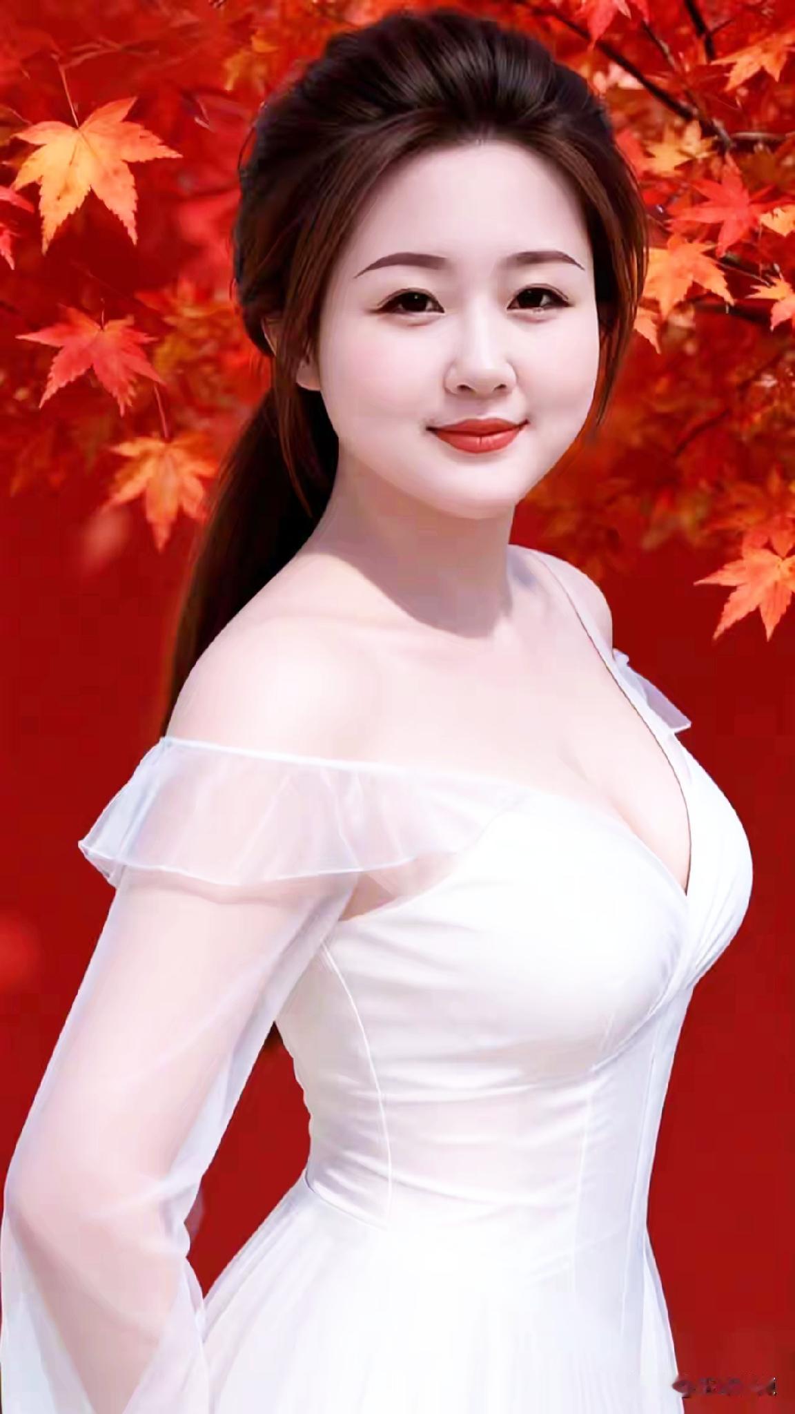 秋日红叶下,白裙少女笑靥如花🍂🌸