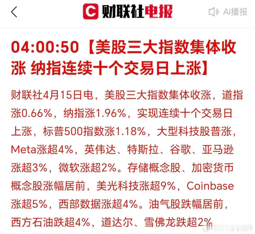 纳指10连阳了!中东传出第二轮谈判,油气股就跌了!就像当初黄金,情绪一下子冲到那么高,一旦回落,杀伤力很大。炒股切忌头脑发热!