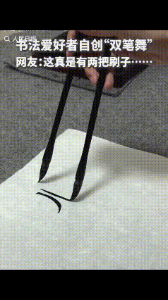 “这才是真高手!”近日,一位书法爱好者单手双笔挥毫的视频火到了人民日报,只见他一只手握着两支毛笔,蘸墨落笔一气呵成,字落纸间如双笔在“跳舞”! 网友:“会跳舞的单手双笔书法,尽显舞姿。” 这是被央媒转发的“神仙操作”: 画面中,一张宣纸,以及书法爱好者右手里那两支……并排捏着的毛笔。 只见他气定神闲,右手两指微夹,两管柔毫就像长在肉里一样听话。蘸墨,起势,落笔,整个过程毫无滞涩。 这哪里是在写字?分明是一场无声的现代舞。 左边那笔重如泰山,撇捺间带着金石之音;右边那笔轻如飞燕,游走时宛如春风拂柳。两道墨迹在洁白的纸面上交织、缠绕、铺陈,最终化作一行气韵生动的汉字: “顺风顺水顺财神” 评论区瞬间炸了锅,有人惊叹这是“纸上的双人舞!” 也有人调侃:“真的不敢想象,和你坐一桌吃席,我还能夹到什么菜!” 但真正懂行的人,看完却直呼:“这手艺绝了”! 前阵子,看到网上大爷用沙土写字,以为就够绝了,没想到,这位书法爱好者更胜一筹。 他的字里,没有一丝“快看我有多牛”的浮躁。 那种举重若轻的从容,是绝对骗不了人的。 你想过没有,一只手同时驾驭两支笔,控制力需要精确到毫米?写偏一点、力道不均一点,出来的就是一团黑疙瘩。这意味着,在他让我们惊叹的这短短几十秒背后,是数不清的练习过程。 其实,没有一种从容是天生的,哪有什么老天赏饭吃,不过是把别人用来抱怨和焦虑的时间,都用来默默死磕罢了。 当你愿意为了一个目标,耐得住寂寞,扛得住反复,把动作练成本能的时候,你也能在自己的生活里,写出属于自己的惊艳篇章。