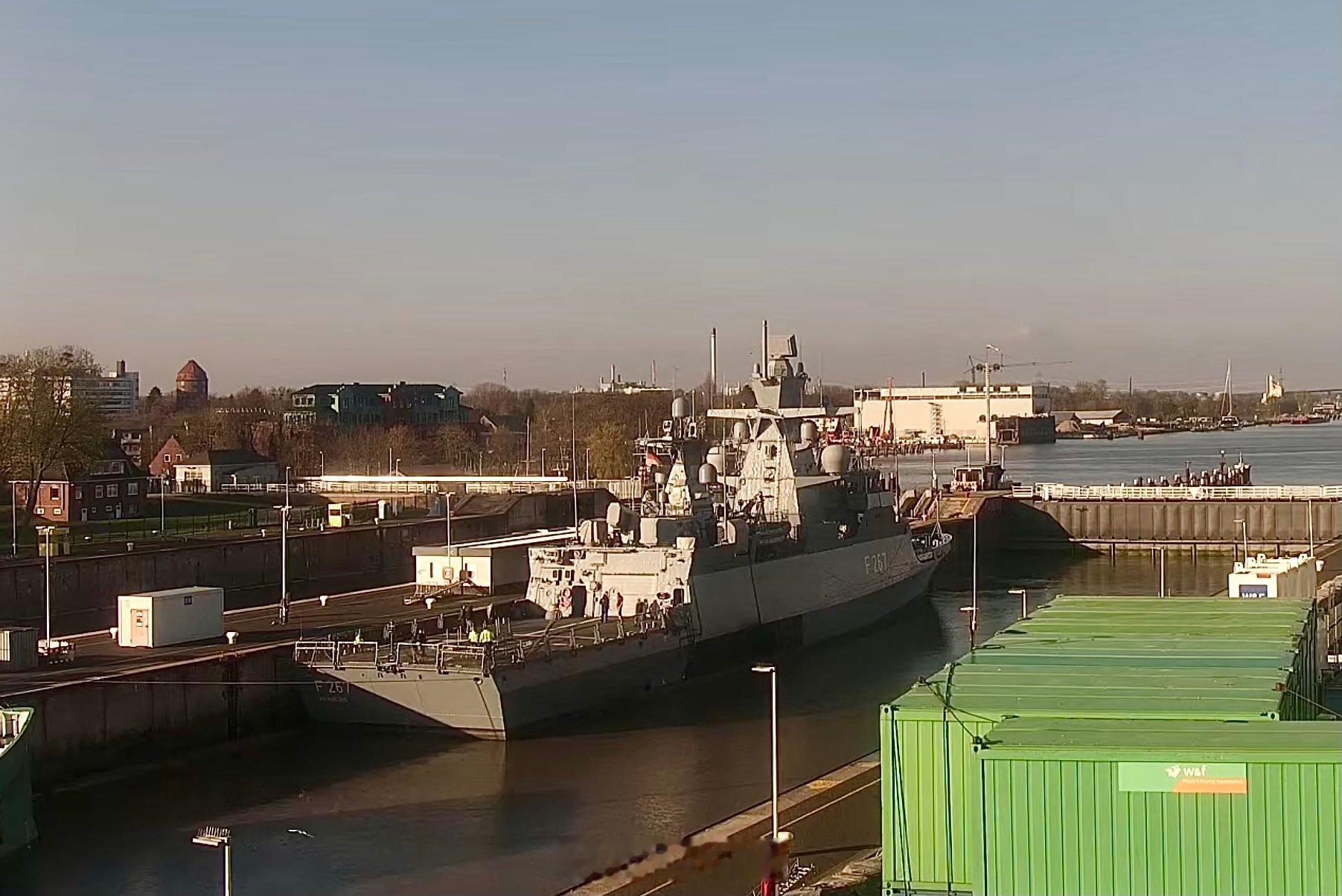 全球武器装备盘点每天认识一件兵器烽火问鼎计划 2026 年 4 月 14 日,德国海军“不伦瑞克”级 2 批护卫舰“卡尔斯鲁厄”号(舷号 F267)在德国基尔运河的布伦斯布特尔船闸。