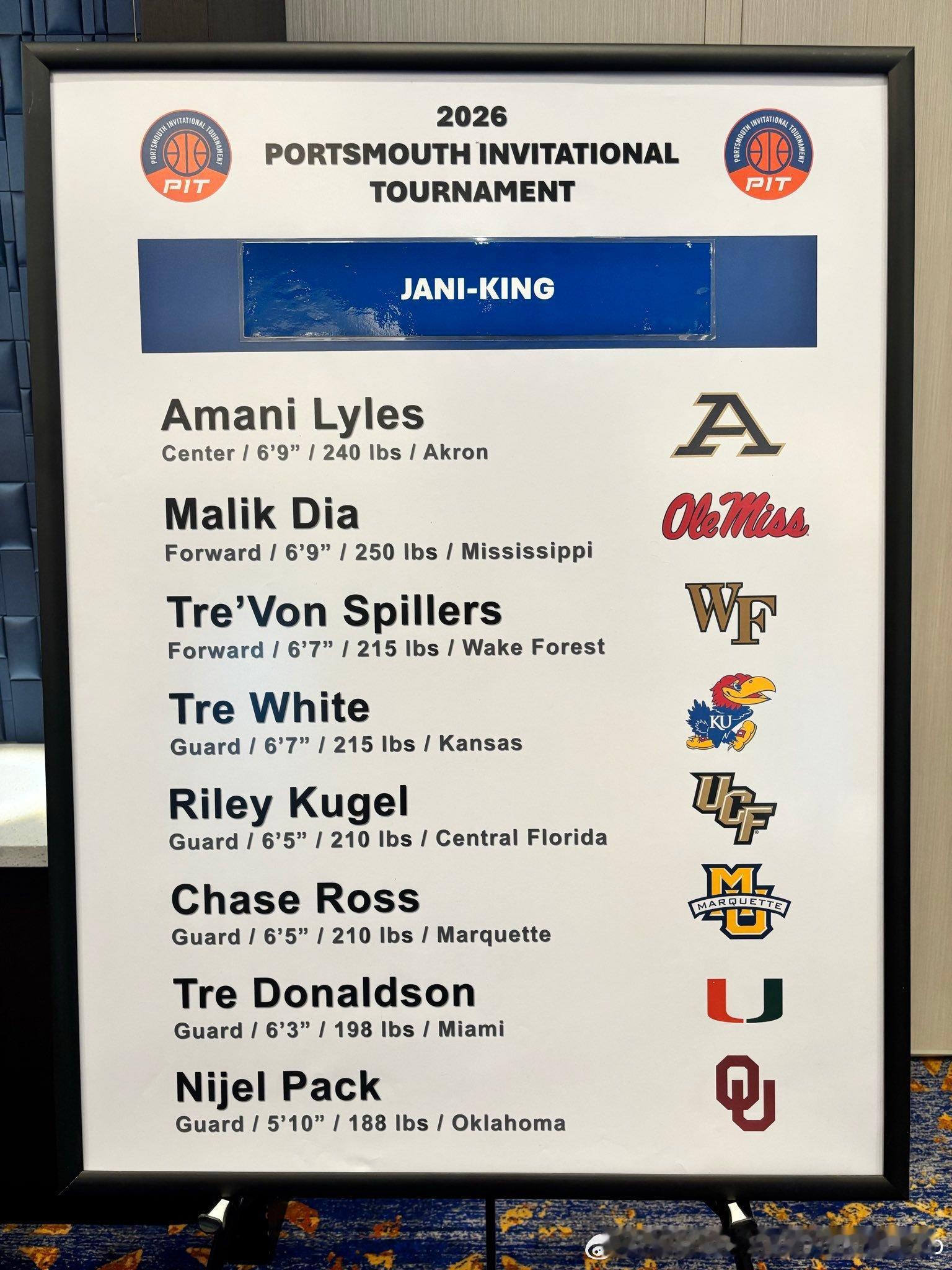 PIT名单宣布,不要小瞧了PIT,里面也有不少好货,当年Toumani Camara就是从PIT打进了NBANCAANBA