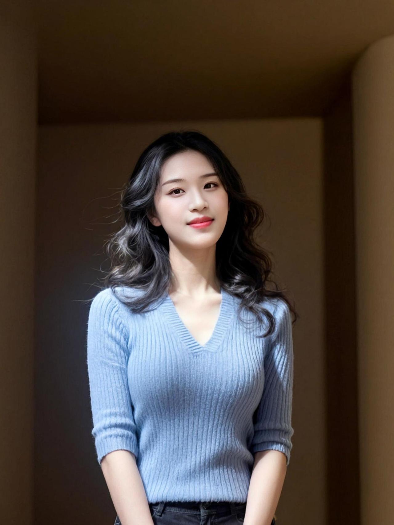 这穿搭简直是“知性”与“港风”的神仙打架!蓝色毛衣温柔得像春风拂面,又带着点复古的味道,仿佛在说:“我既能优雅地喝下午茶,也能帅气地走T台。”到底是“随性”赢了,还是“港风”称霸,你们来评评理?